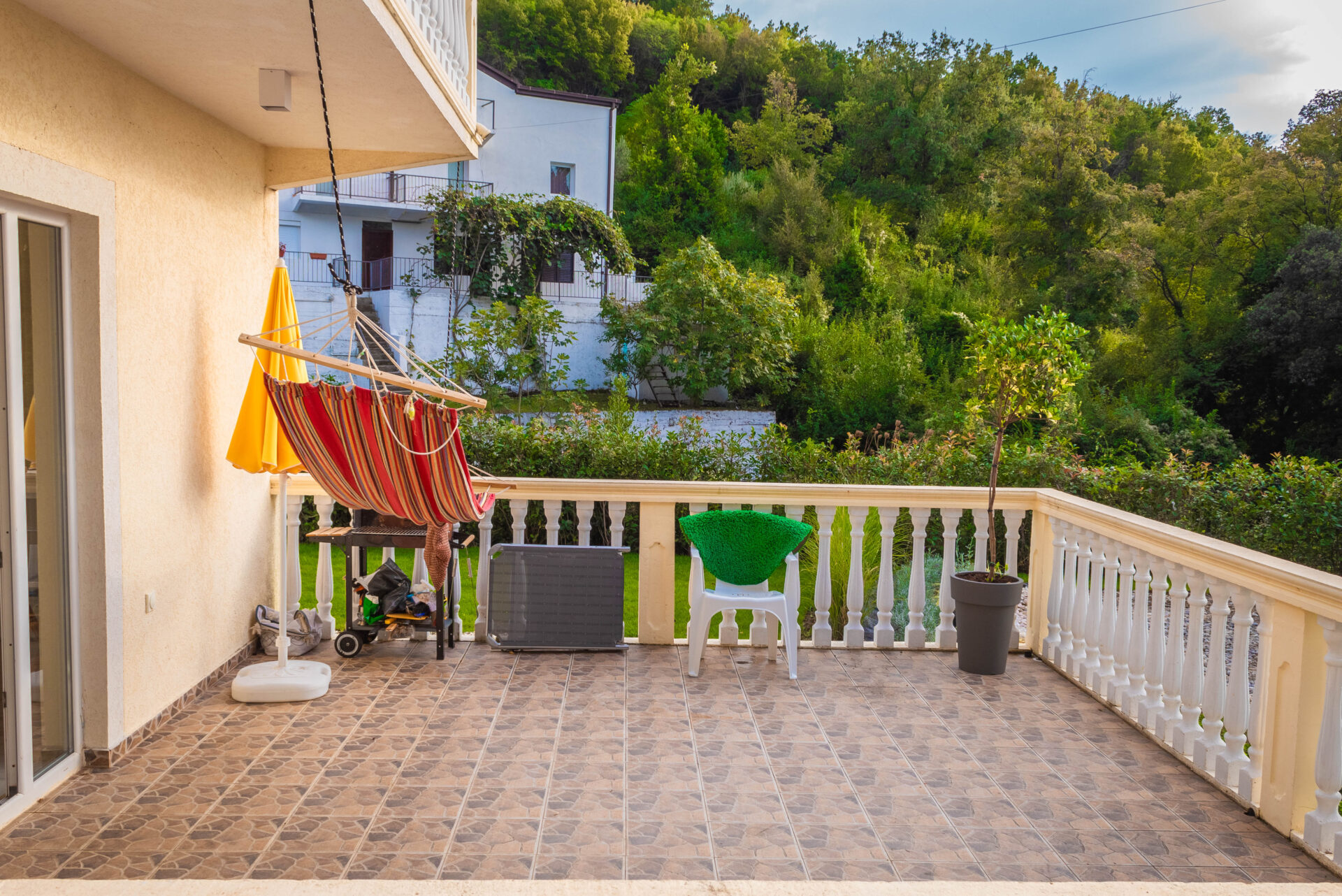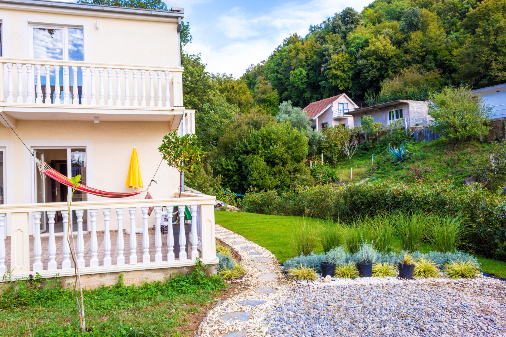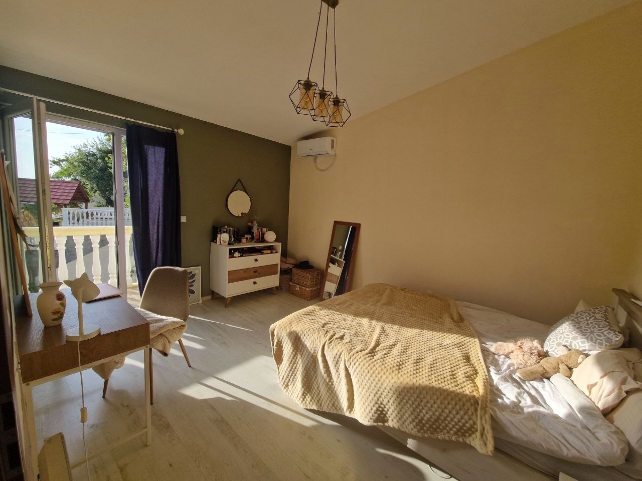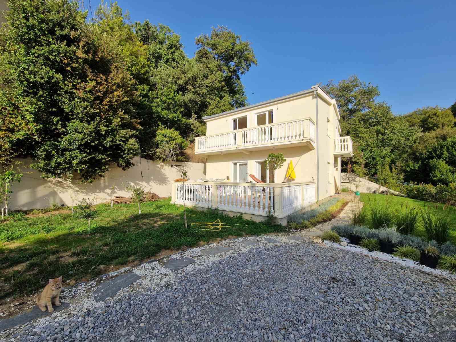 The house, located on the second line from the sea, provides a unique opportunity to live just 60 meters from the beach (2-3 minutes walk). The total area of the house is 148 square meters. Additional benefits include a huge terrace on the lower floor and spacious balconies in the bedrooms on the upper floor.
