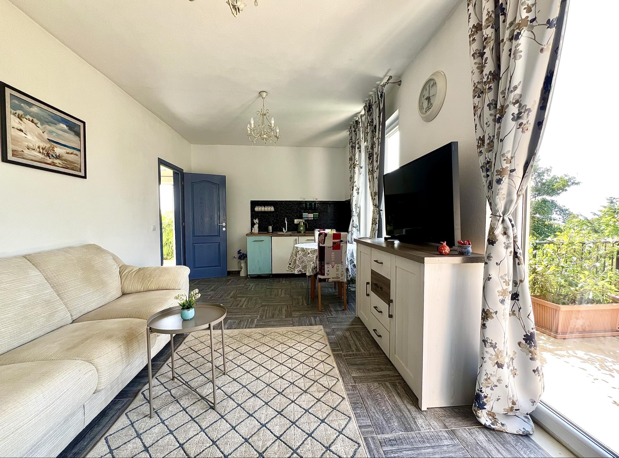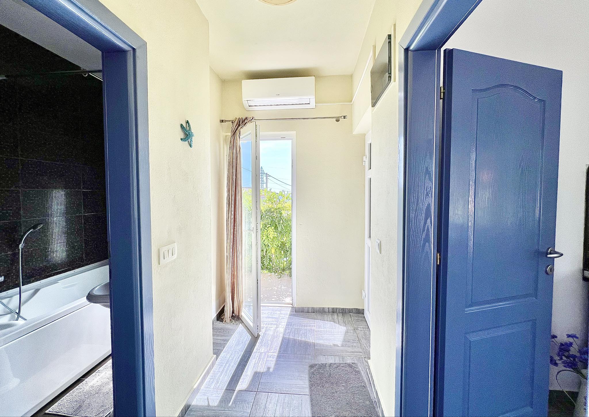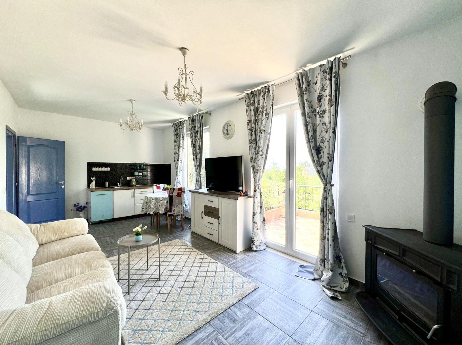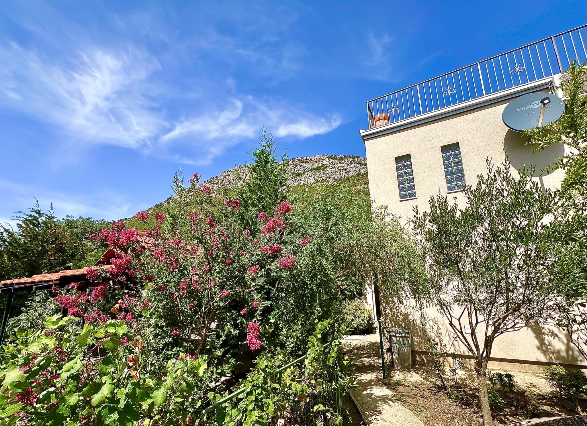 — Второй этаж : Имеет отдельный вход и представляет собой автономную квартиру. Здесь расположены спальня, гостиная с кухней, санузел с ванной-джакузи, а также открытая терраса и отдельный балкон. С балкона можно подняться на плоскую крышу, откуда открывается захватывающий вид на море и горы — идеальное место для занятий йогой или принятия солнечных ванн.