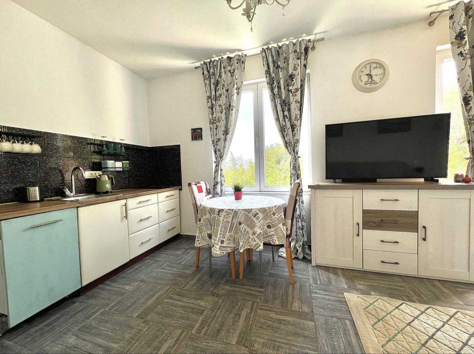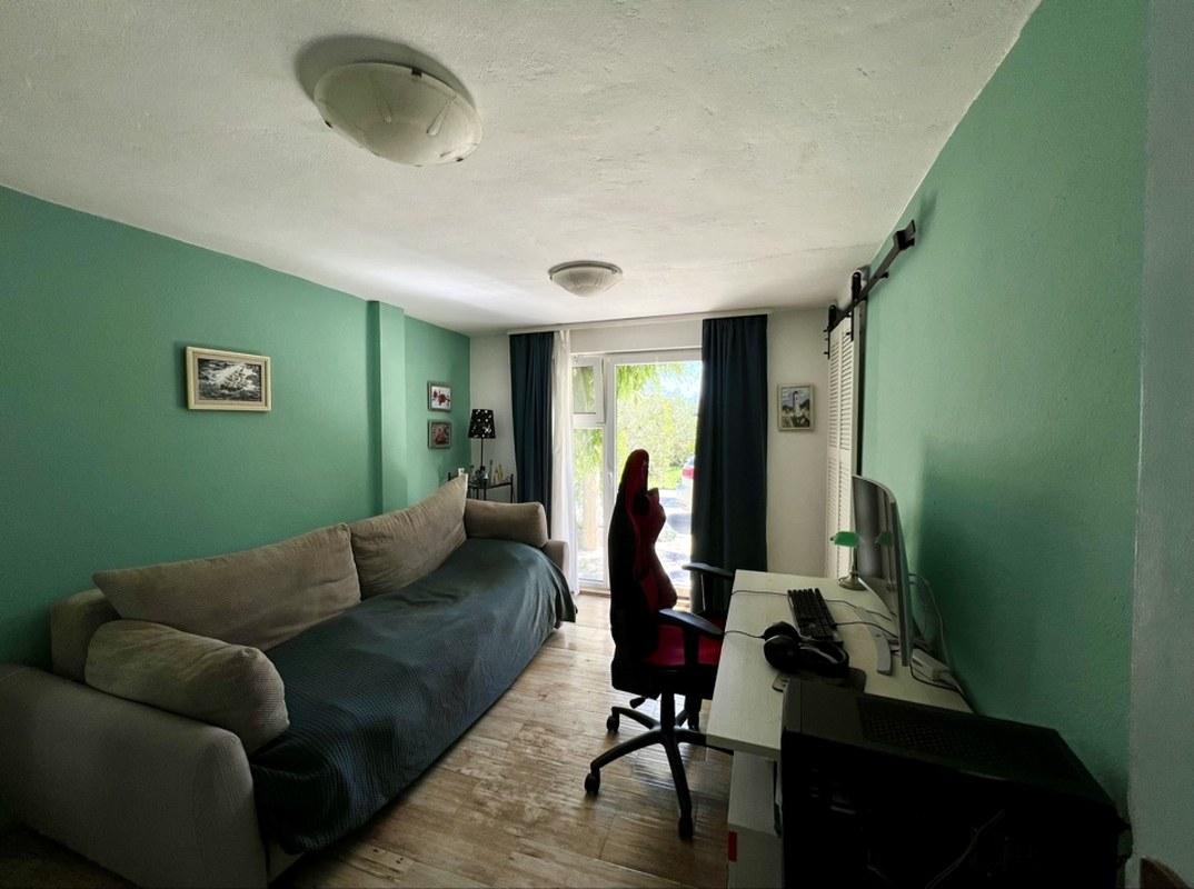 — Первый этаж : Вас встретит просторная застекленная терраса, идеальная для утреннего кофе или вечернего отдыха. Прихожая ведет к кухне со столовой зоной, где удобно готовить и наслаждаться семейными обедами. На этом этаже также расположены три уютные спальни, одна из которых имеет прямой выход в сад, подсобное помещение и санузел с душем.