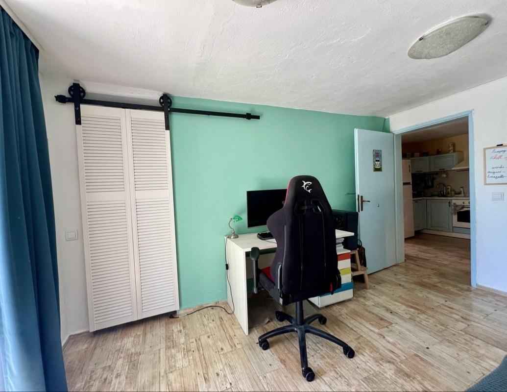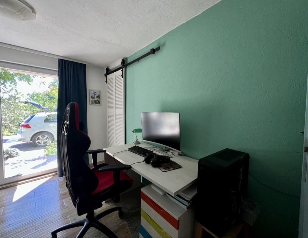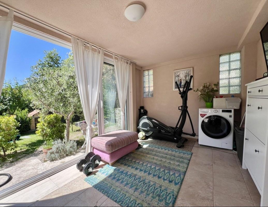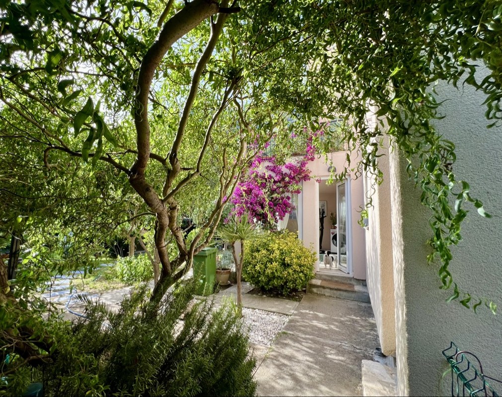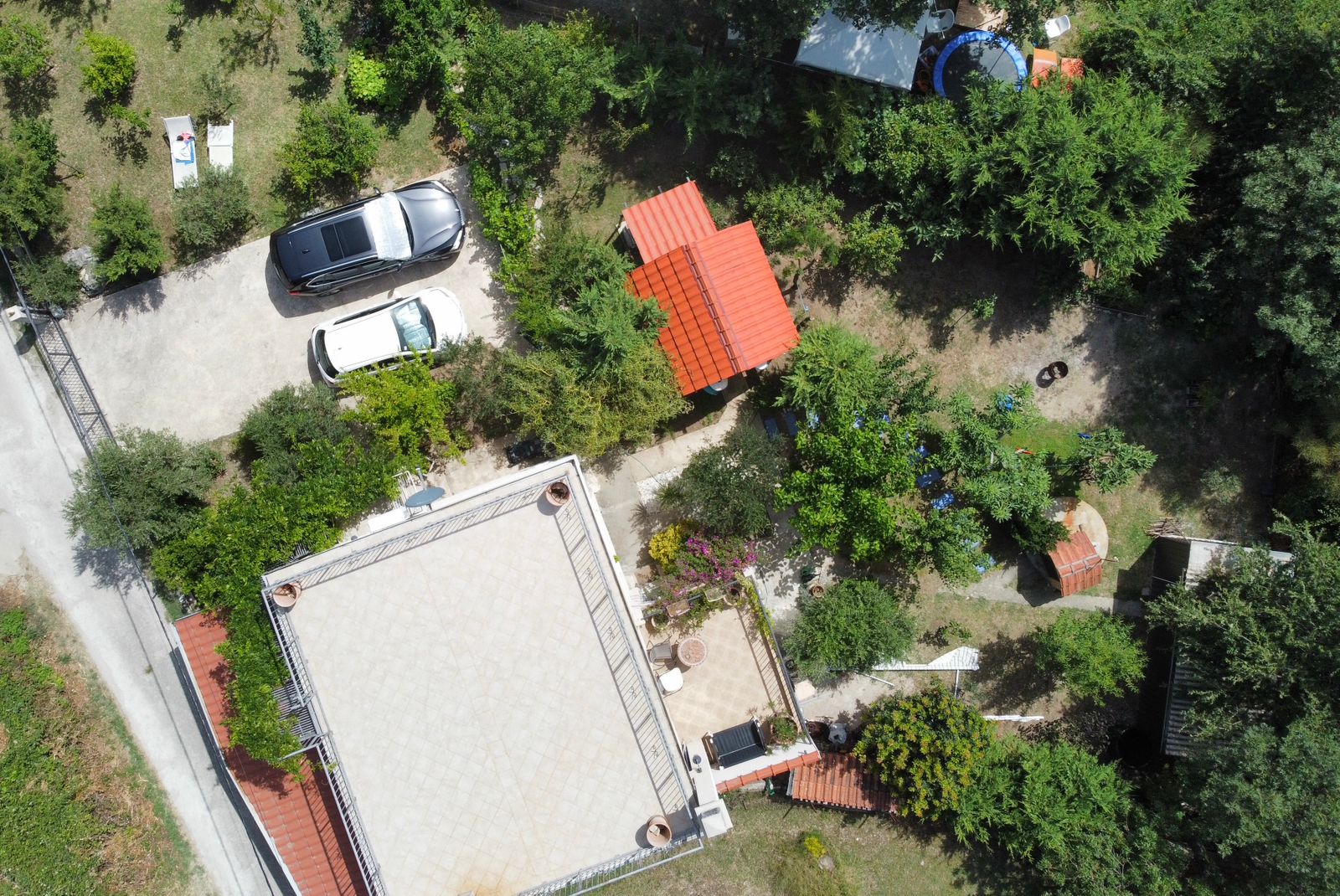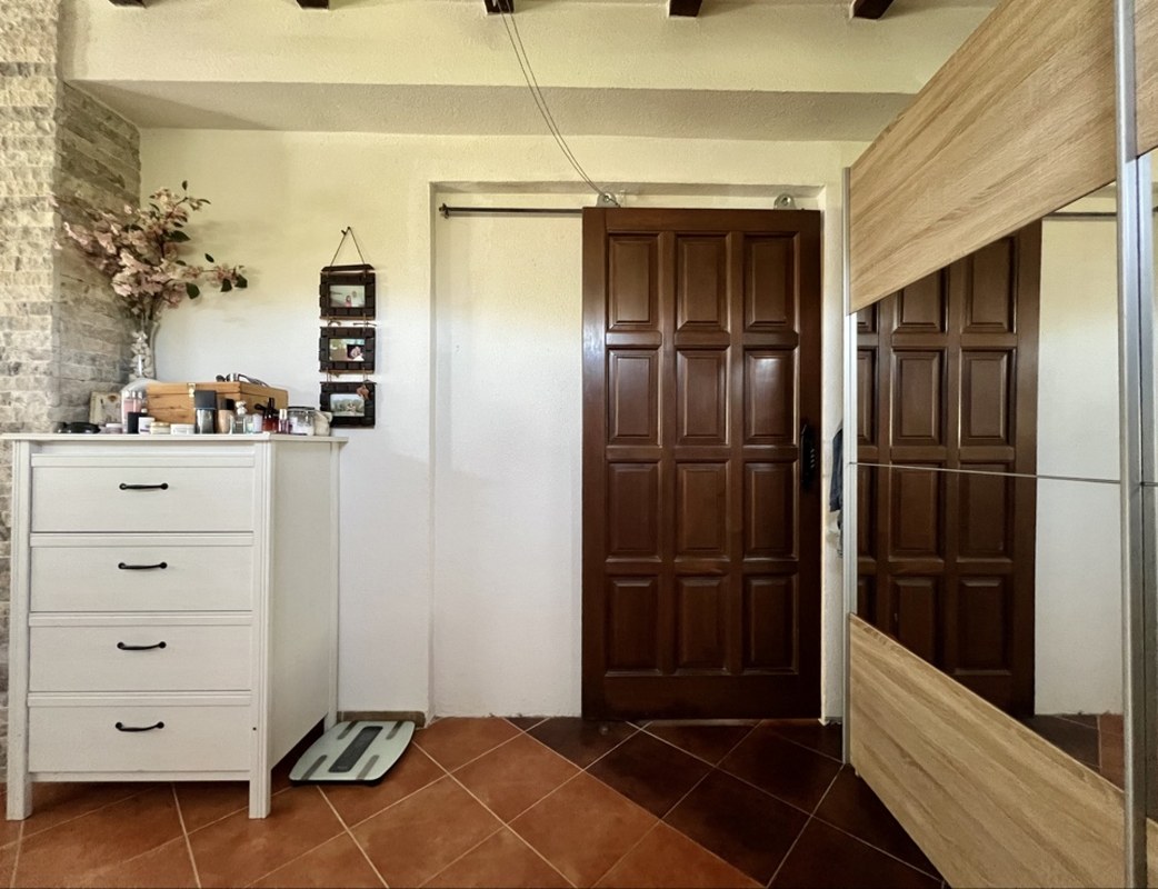 На участке растут разнообразные фруктовые деревья, оливы, декоративные деревья и кусты, создавая атмосферу сада и уюта. Большой паркинг на четыре автомобиля оборудован воротами на дистанционном управлении, что обеспечивает безопасность и удобство. Для любителей барбекю предусмотрено крытое место для приготовления пищи на свежем воздухе, а также отдельно стоящая хозяйственная постройка.