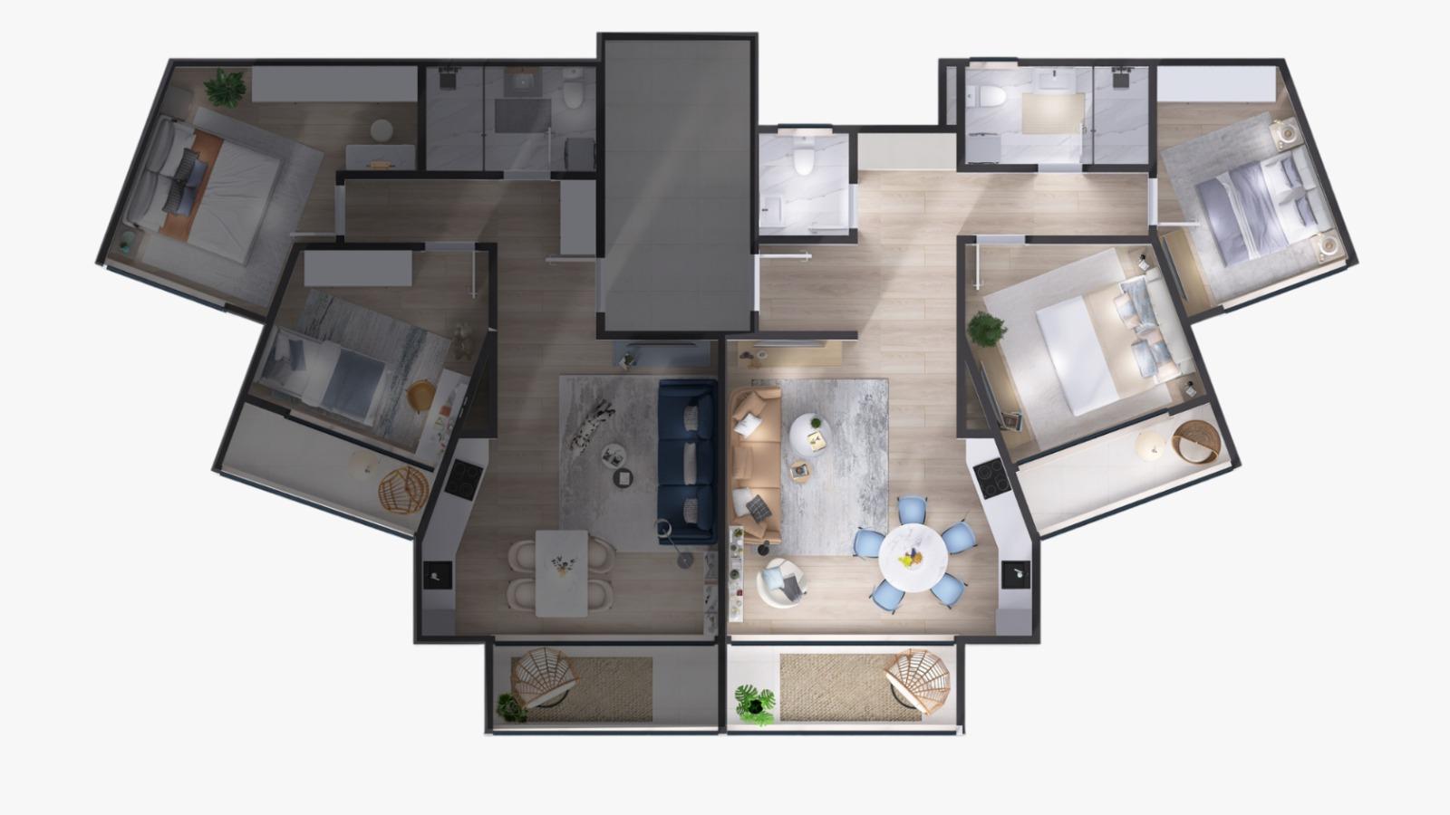 — Комфорт и уют: Просторная жилая зона, две спальные комнаты, современные кухня и зал, две террасы для вашего отдыха.