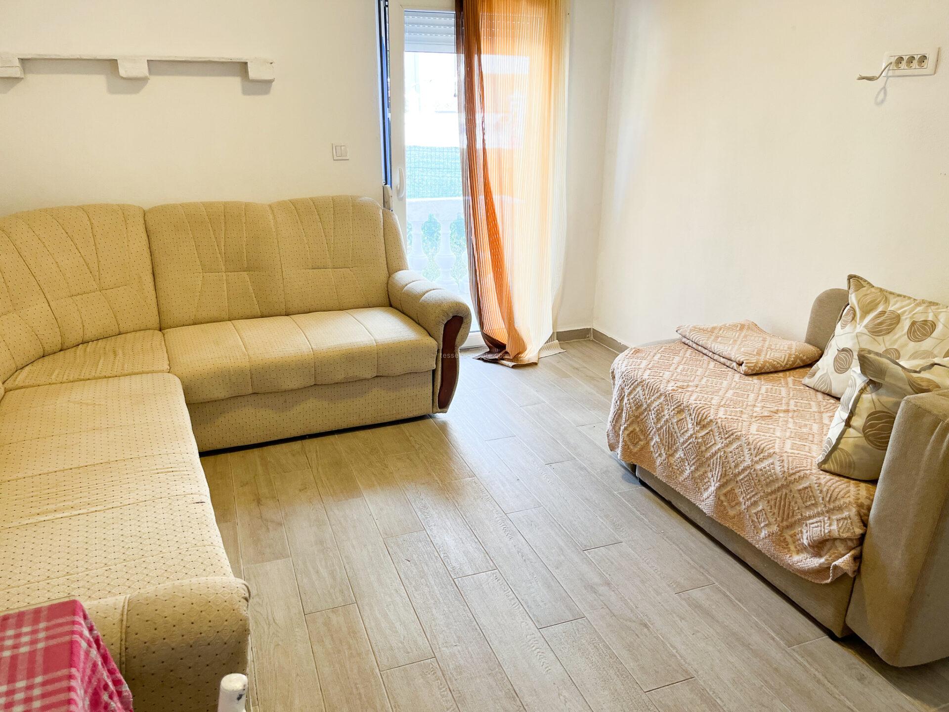 В огороженном дворе паркинг на две машины. Рядом два маркета, три пляжа 10 минут пешком, кафе, рестораны. Пригоден для круглогодичного проживания и для сдачи в аренду.
