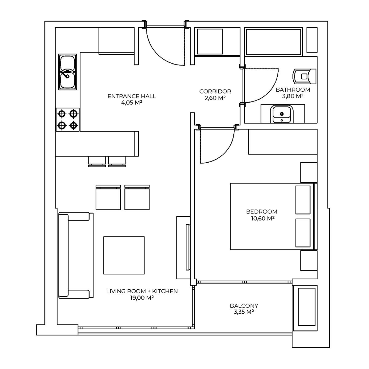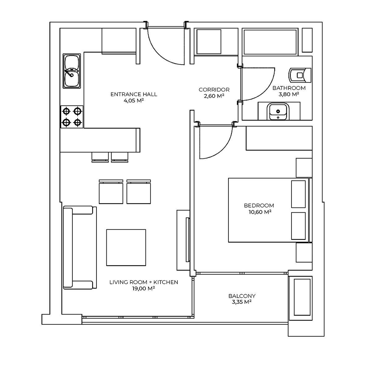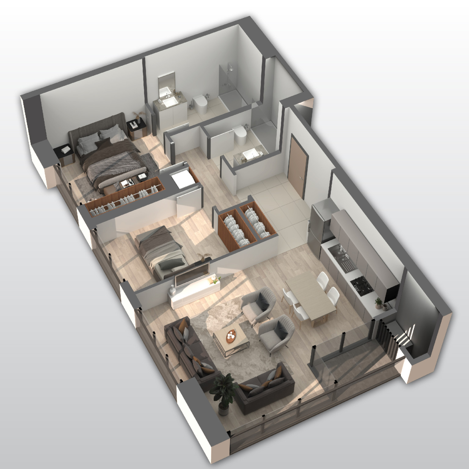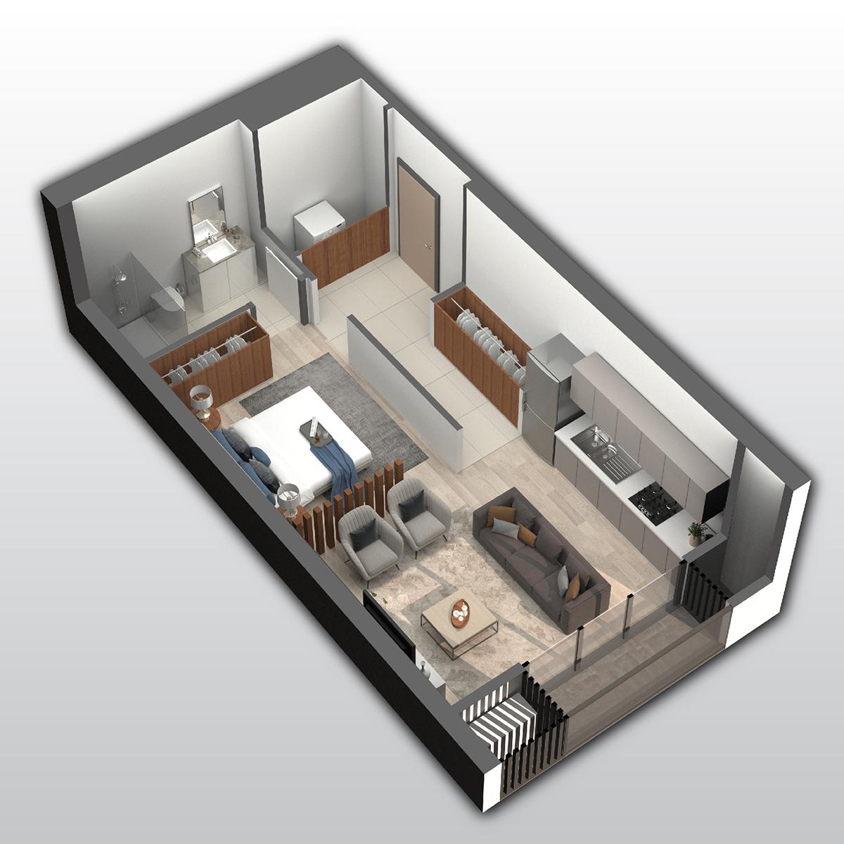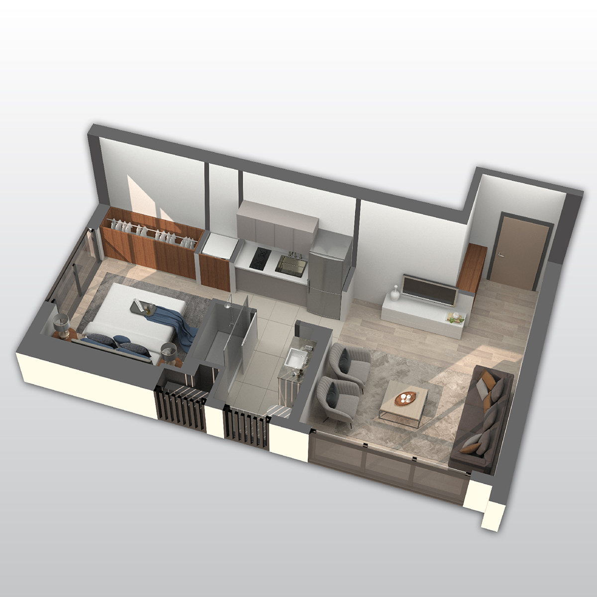 Выбор современных и стильных студий, а также апартаментов с 1 и 2 спальнями с отделкой высокого качества в отличном месте.