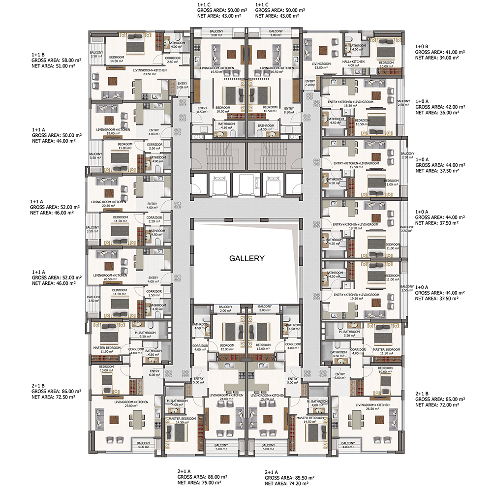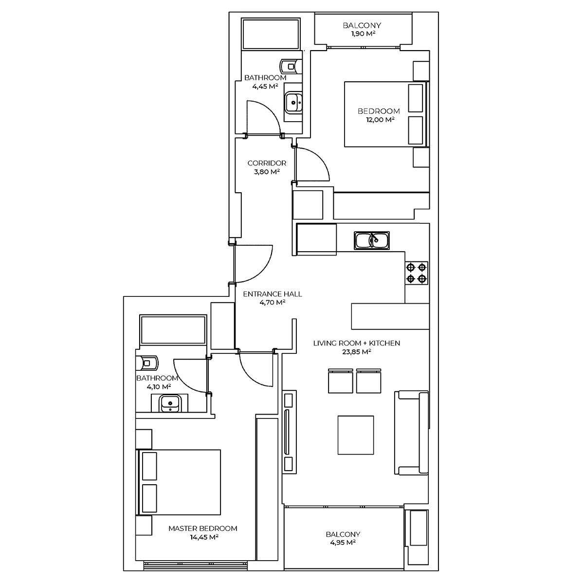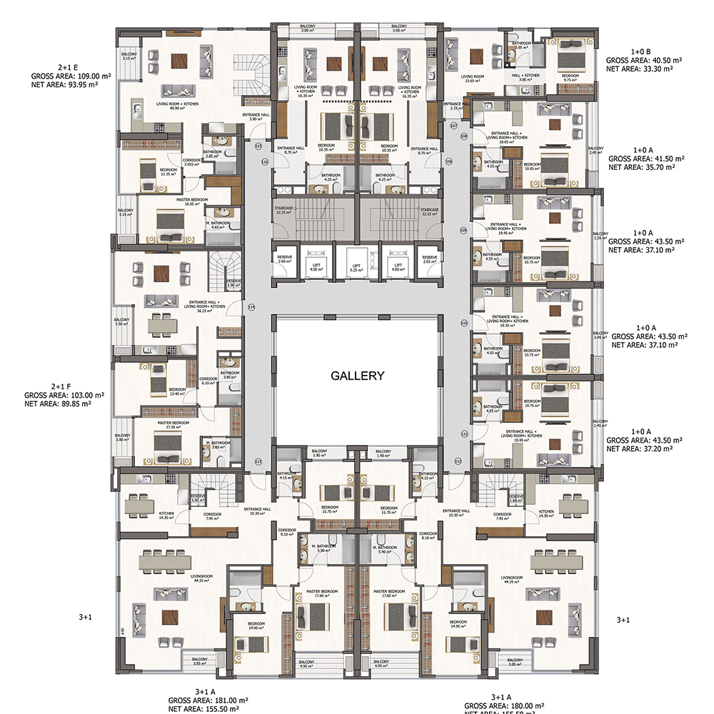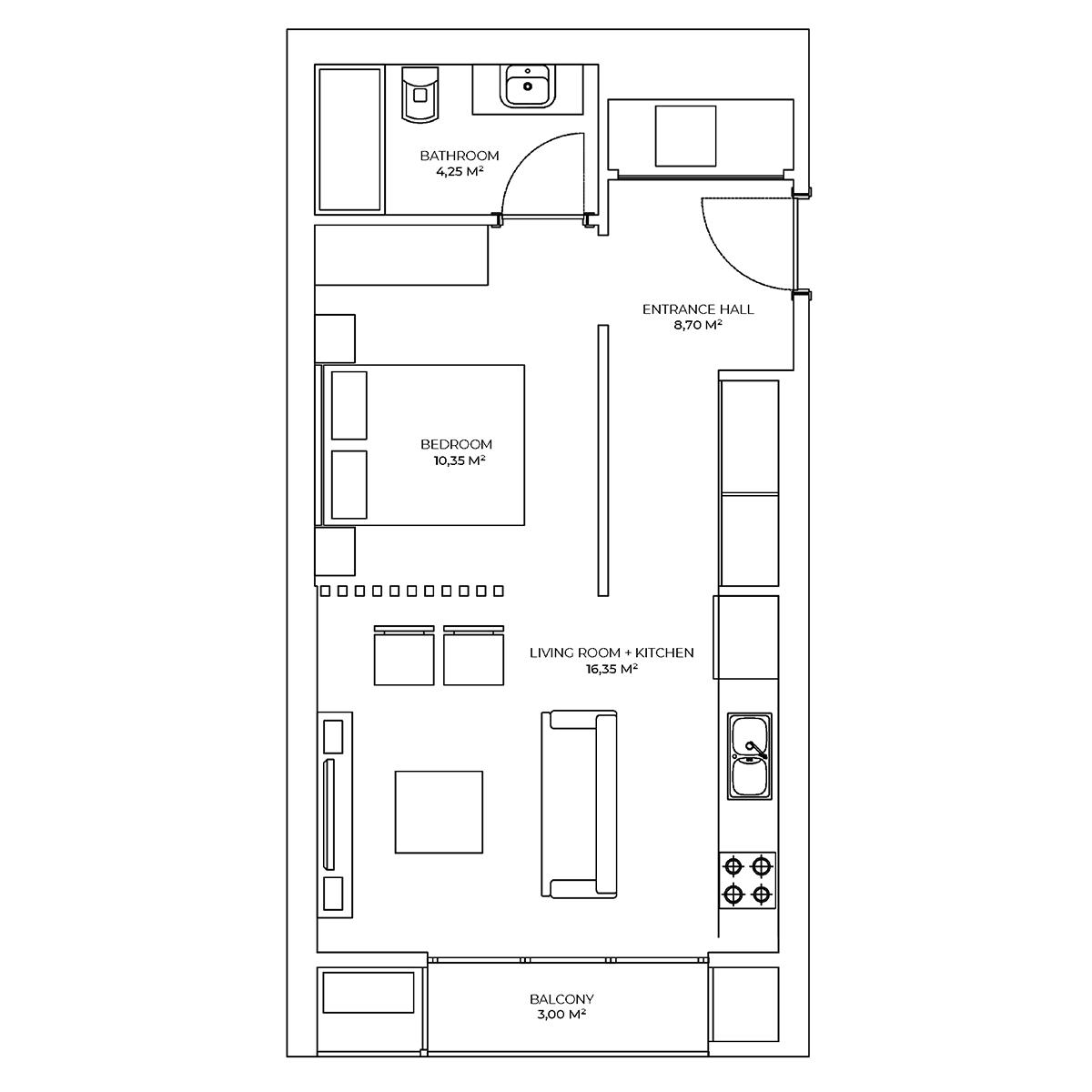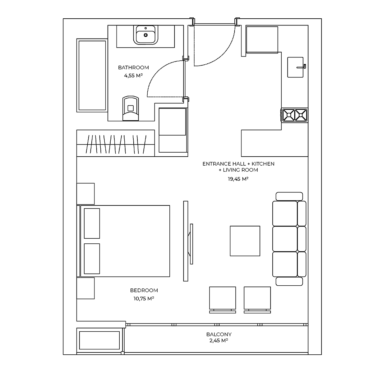 Выбор современных и стильных студий, а также апартаментов с 1 и 2 спальнями с отделкой высокого качества в отличном месте.