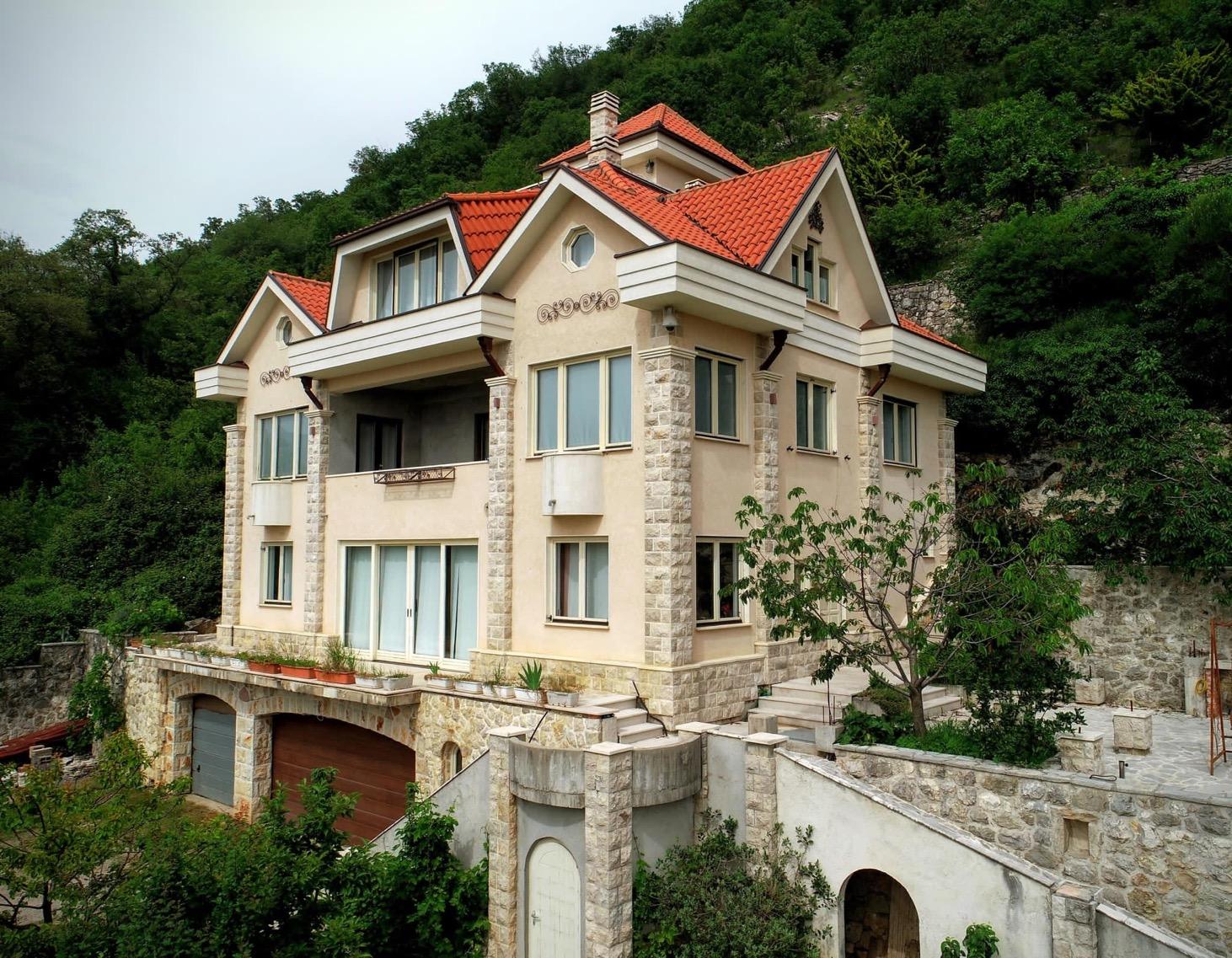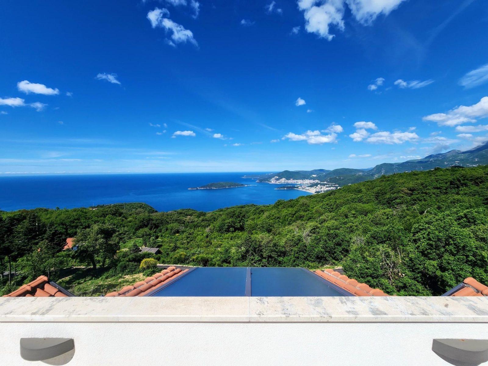 Новый высококлассный коттедж на престижной Будванской ривьере над Свети Стефаном. Панорамный вид на море и фантастические закаты.