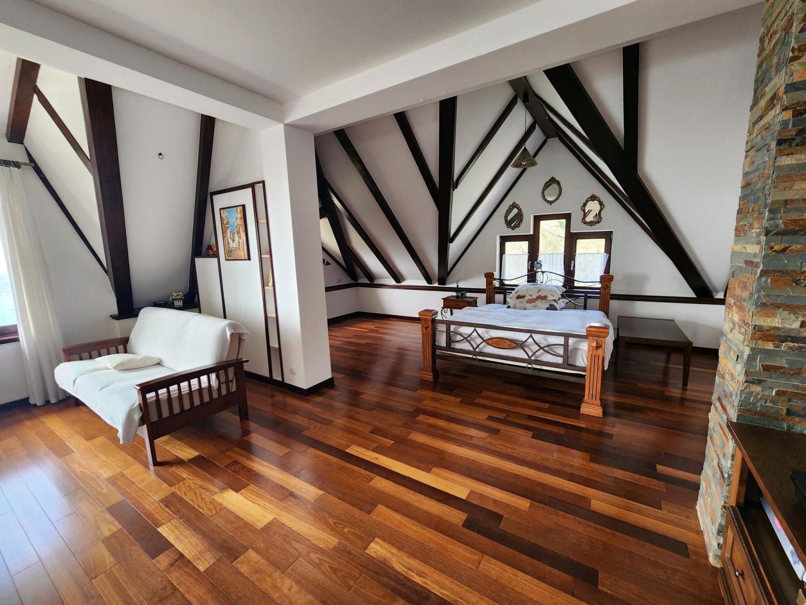 • Третий этаж — спальня; огромный холл с домашним кинотеатром и камином; душевая + санузел