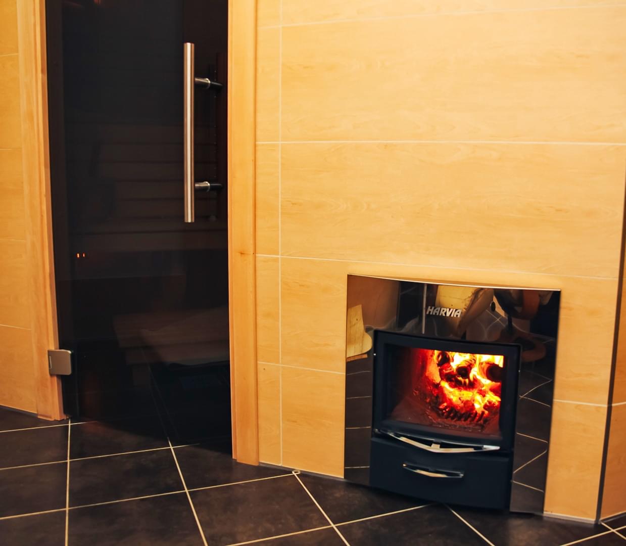 • Сауна — отдохновение души и тела для шести человек. Отделка из благородного дерева абаши, финская дровяная печь HARVIA