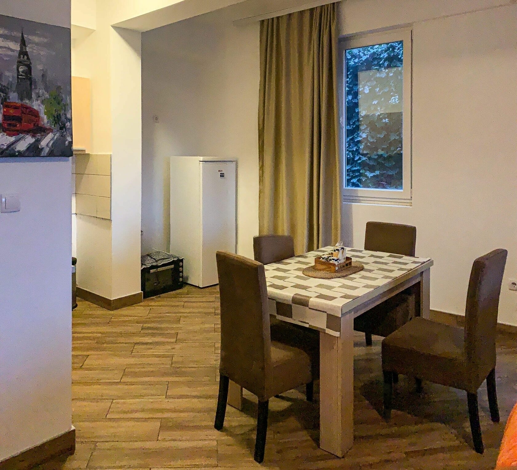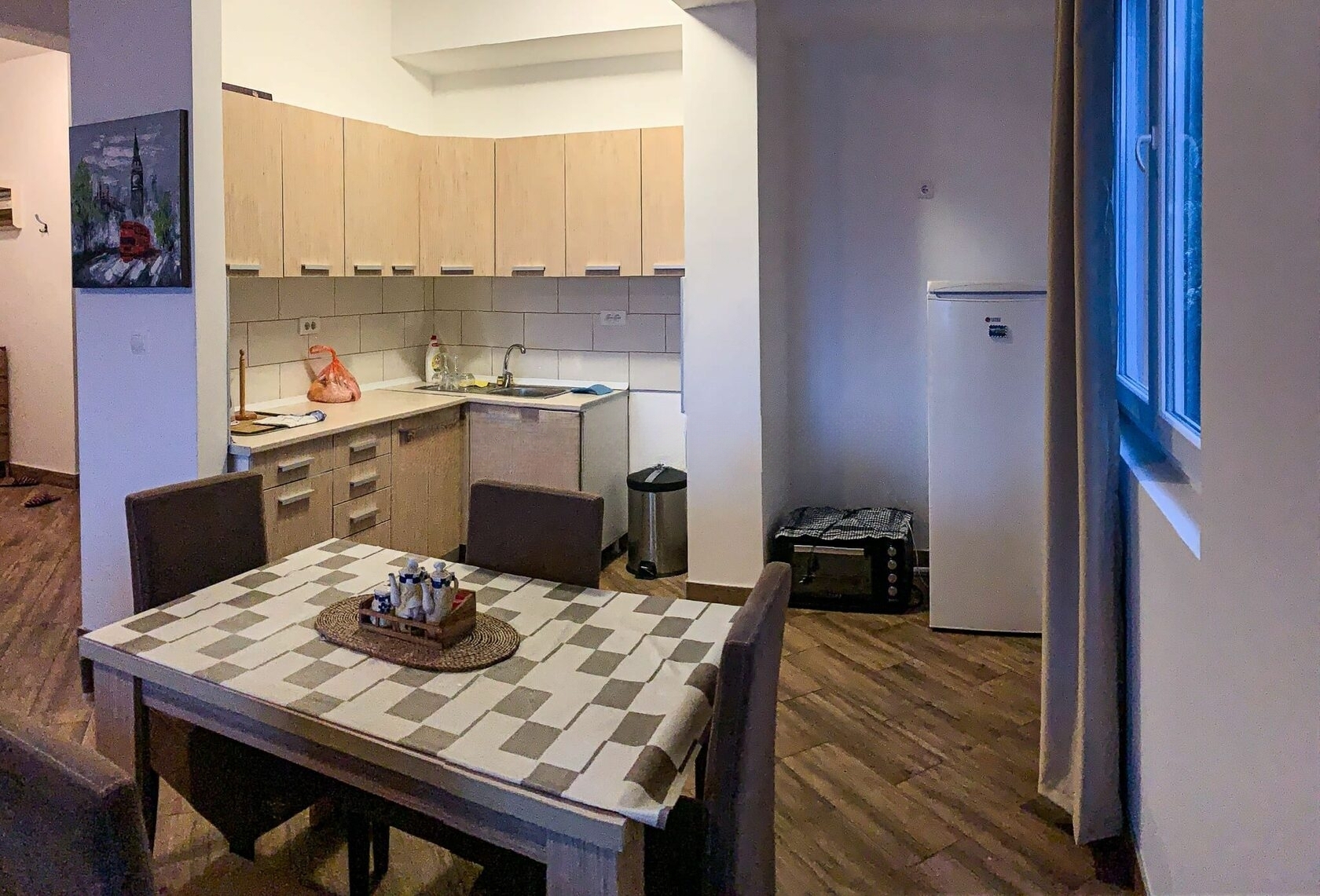 Просторная и уютная квартира находится на высоком первом этаже шестиэтажного дома с великолепным видом на море. Всего в 5 минутах ходьбы от основного пляжа.