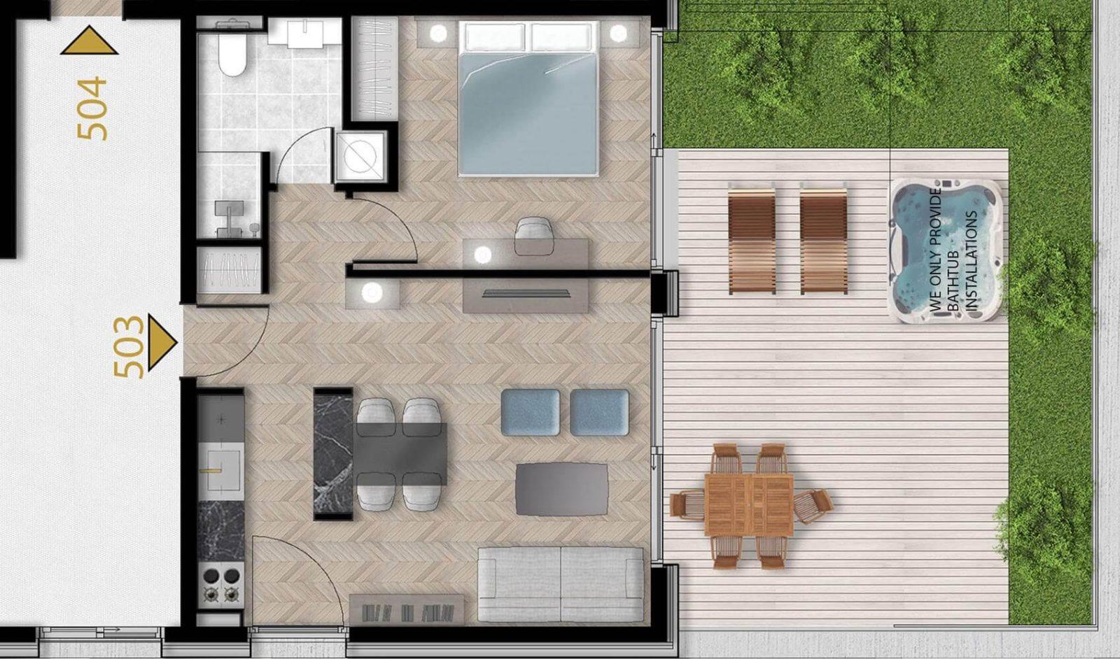 Большая спальня создана для уюта и релаксации, обеспечивая идеальные условия для отдыха после долгого дня. Ванная комната оформлена с применением высококачественных материалов и современных технологий.
