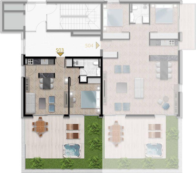 Эта роскошная квартира в Тивате, идеально расположенную на пятом этаже секции С новостройки.