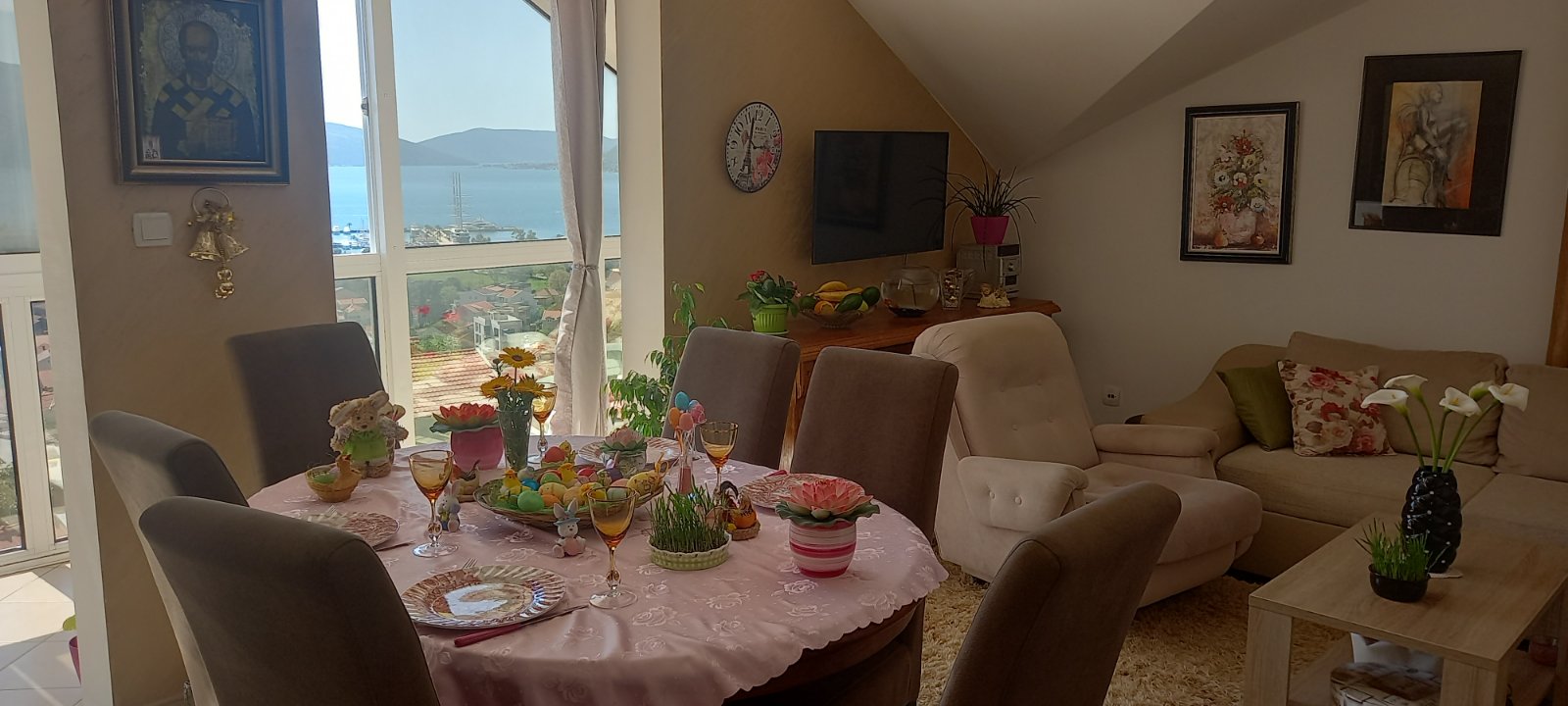 Продаётся просторная квартира в Тивате с шикарным видом, большой террасой и двумя спальнями.
