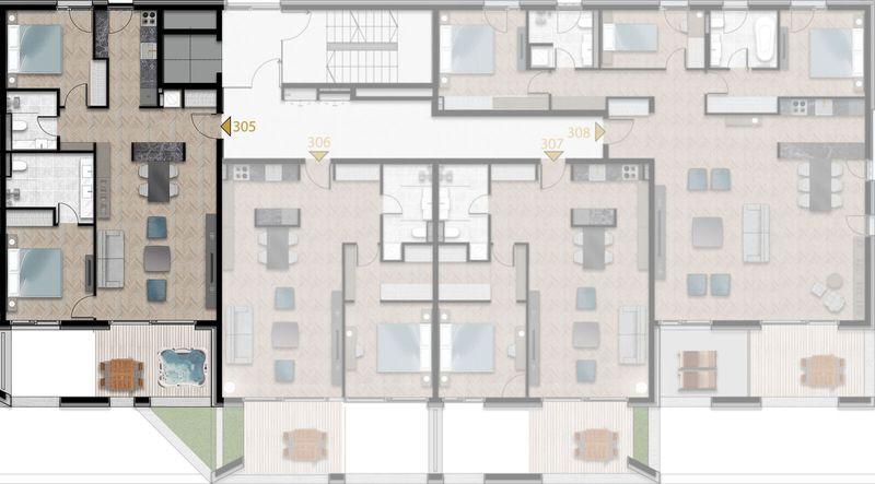С площадью 98,95 квадратных метров на третьем этаже секции С новостройки расположены две просторные спальни, каждая из которых оформлена с учетом самых современных дизайнерских решений.