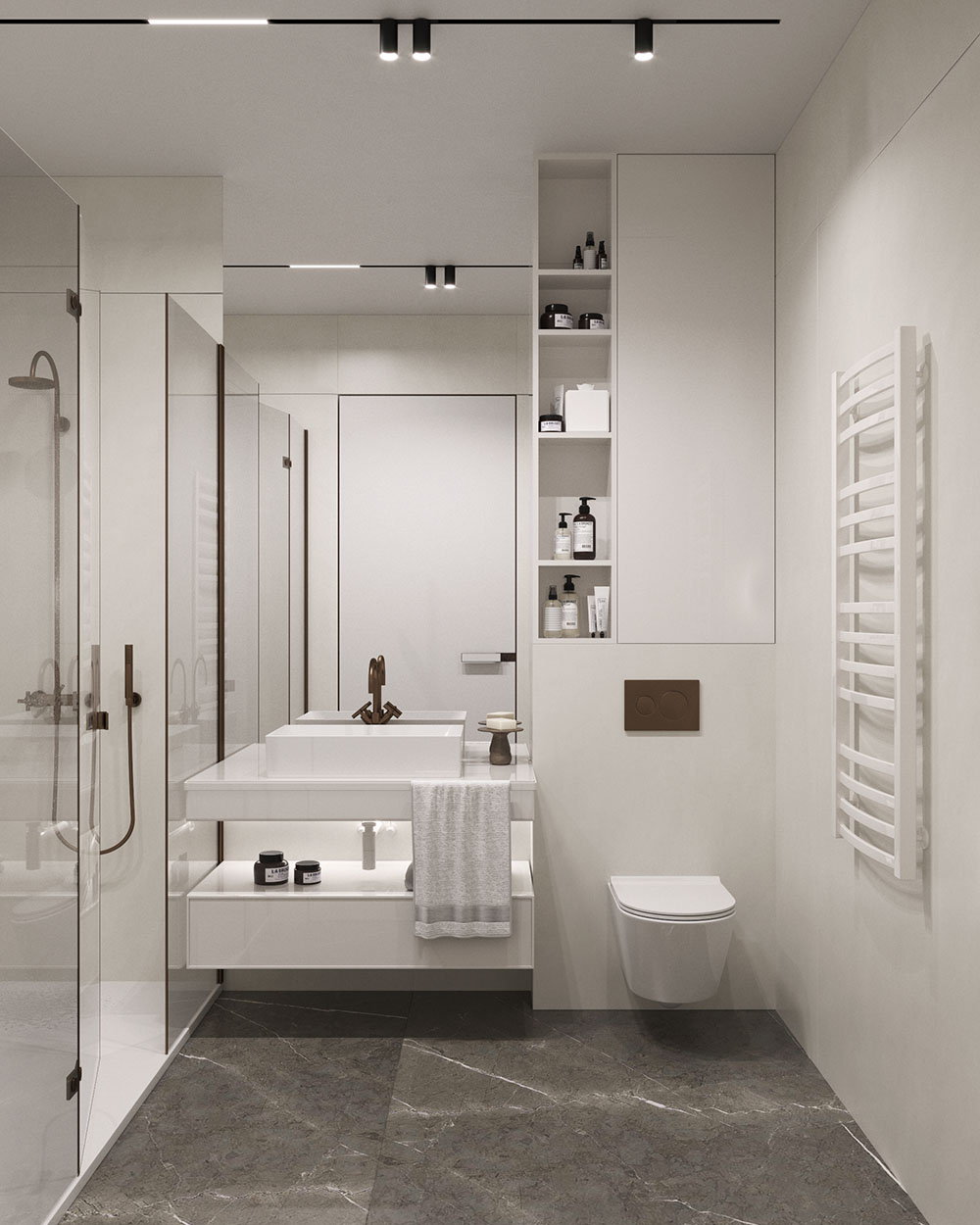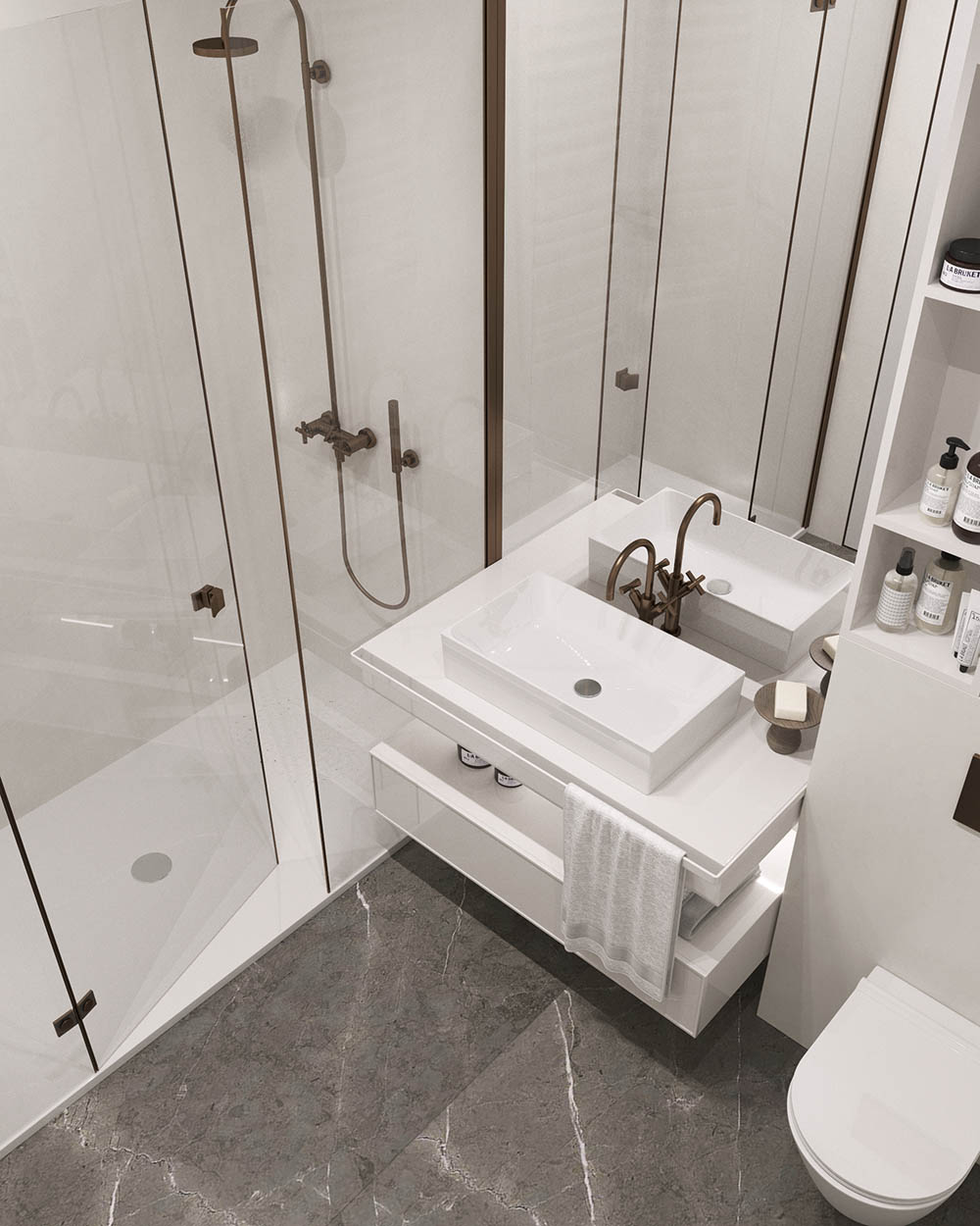 В квартире имеются два элегантных туалета, что обеспечивает удобство и приватность для всех обитателей