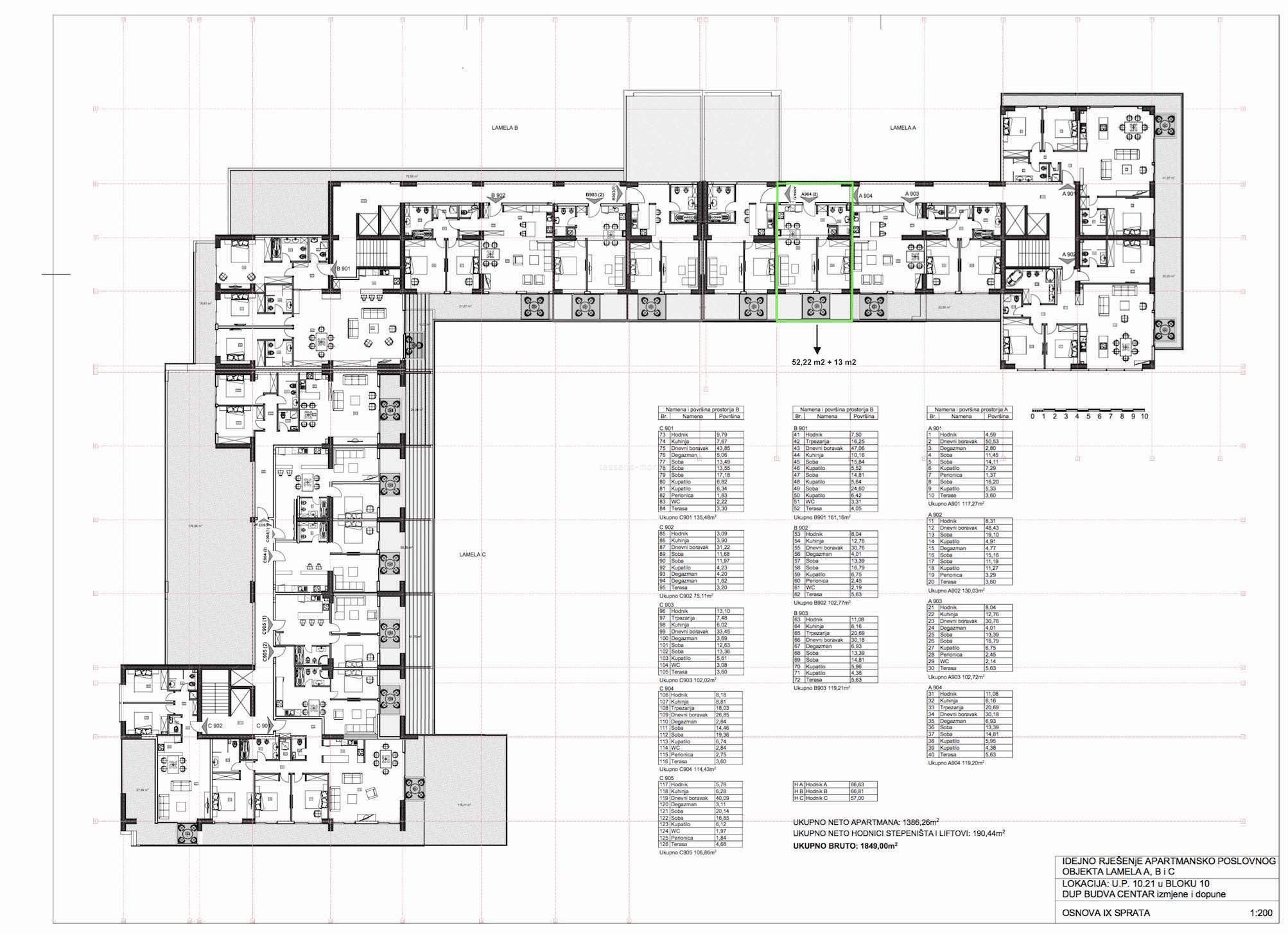 Каждую квартиру данного типа можно разделить на две смежные квартиры-студии с двумя входами, двумя ванными комнатами и двумя спальными зонами с террасой площадью 25 м², где можно организовать бассейн-джакузи размером 5 м х 2 м.