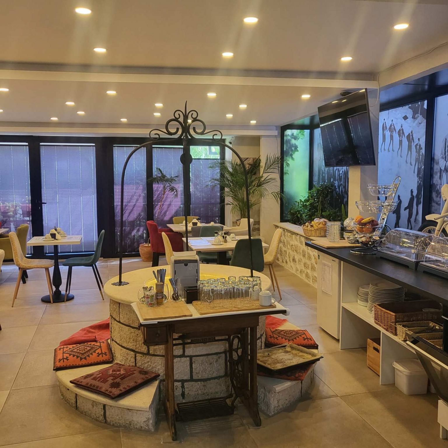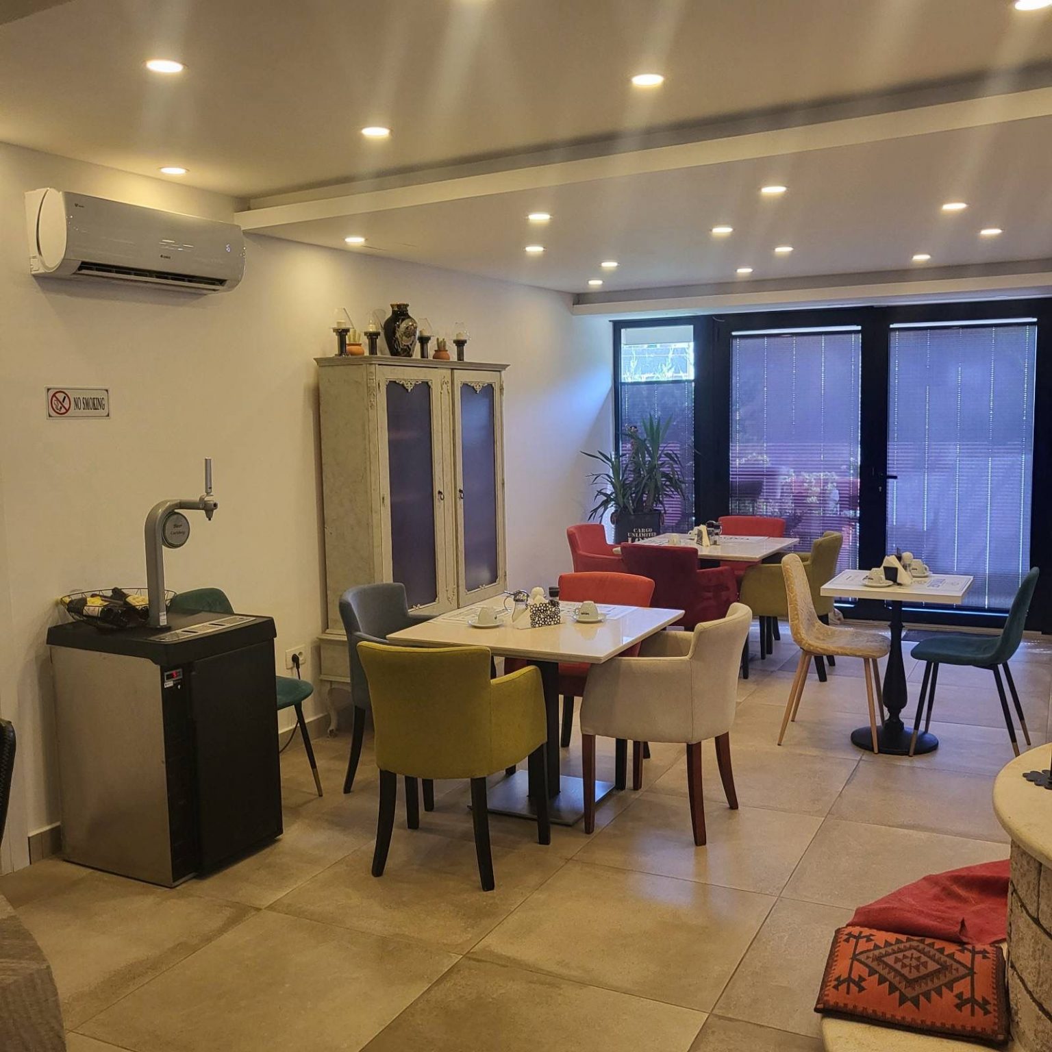 На первом этаже гостей встречает уютное кафе-столовая, где можно насладиться изысканным завтраком или провести вечер за чашечкой ароматного кофе, любуясь закатом и погружаясь в атмосферу Котора.