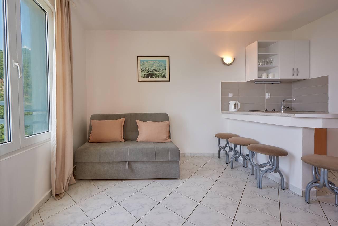 Все апартаменты после ремонта, укомплектованы всей мебелью и техникой, в каждом есть просторная терраса с видом на море.