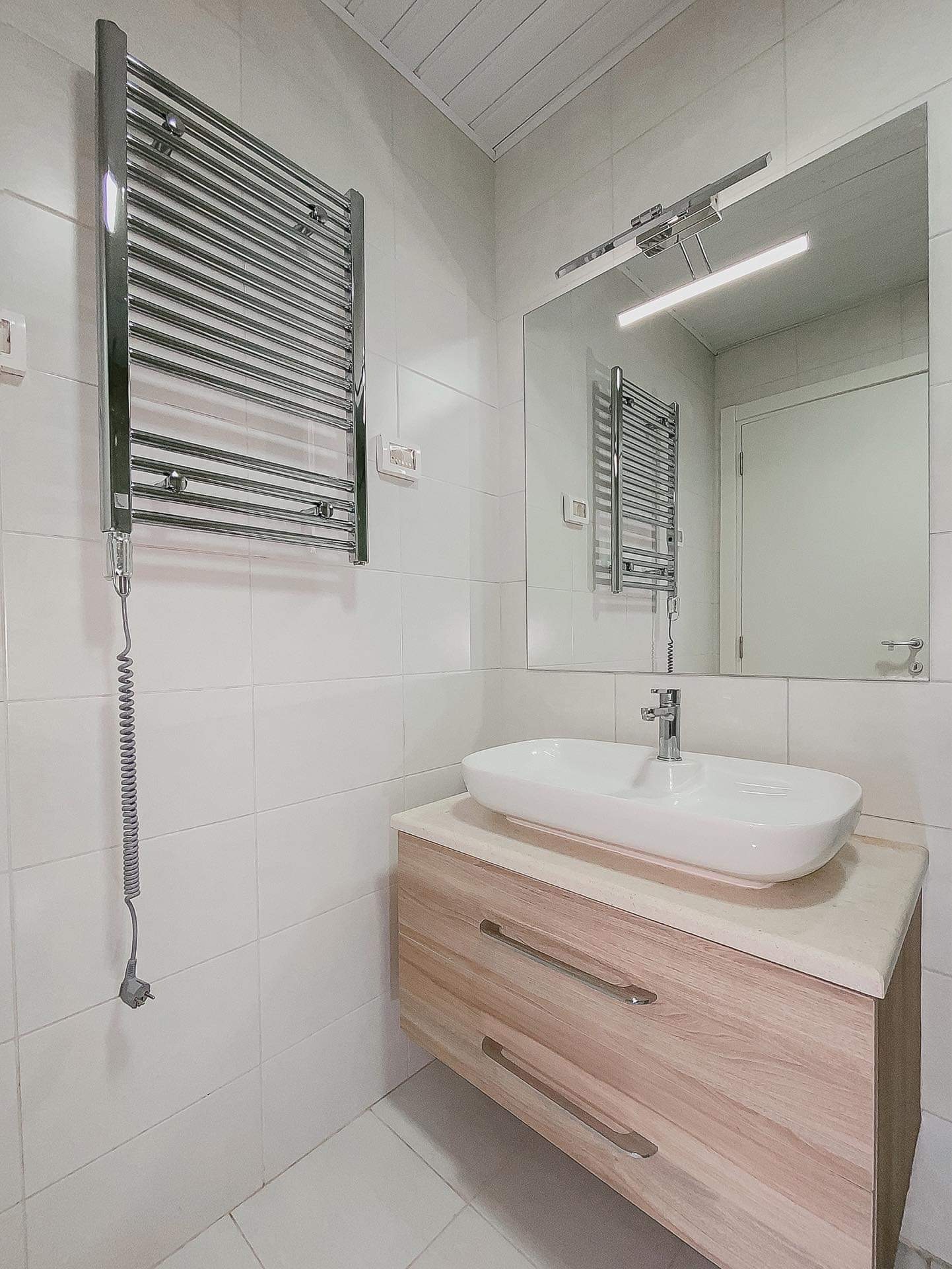 Также шкаф в гостевом туалете также изготовлен на заказ из МДФ высочайшего качества.
