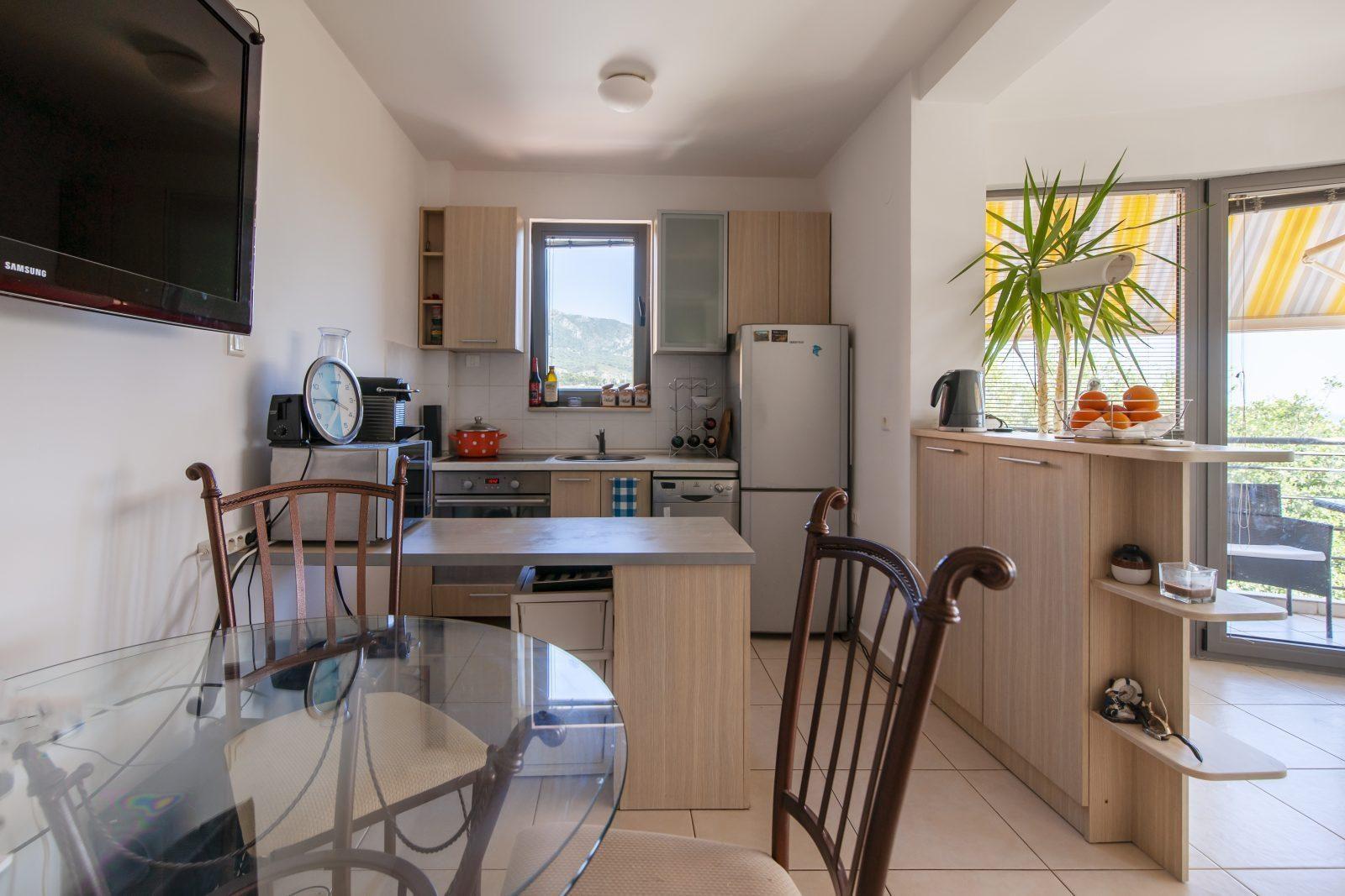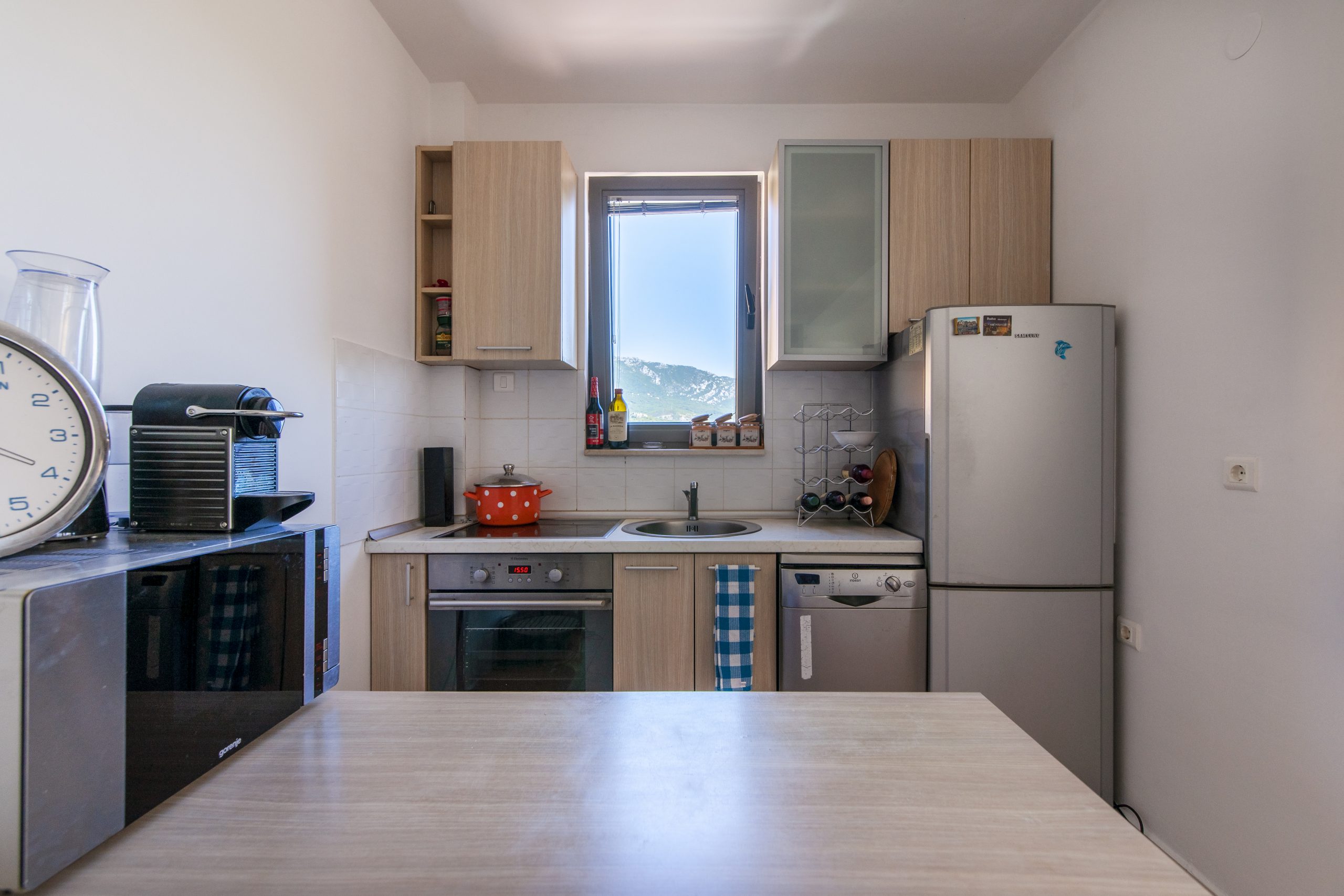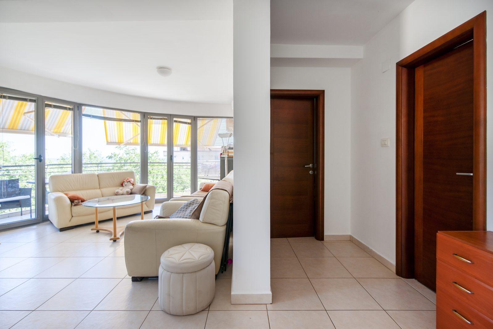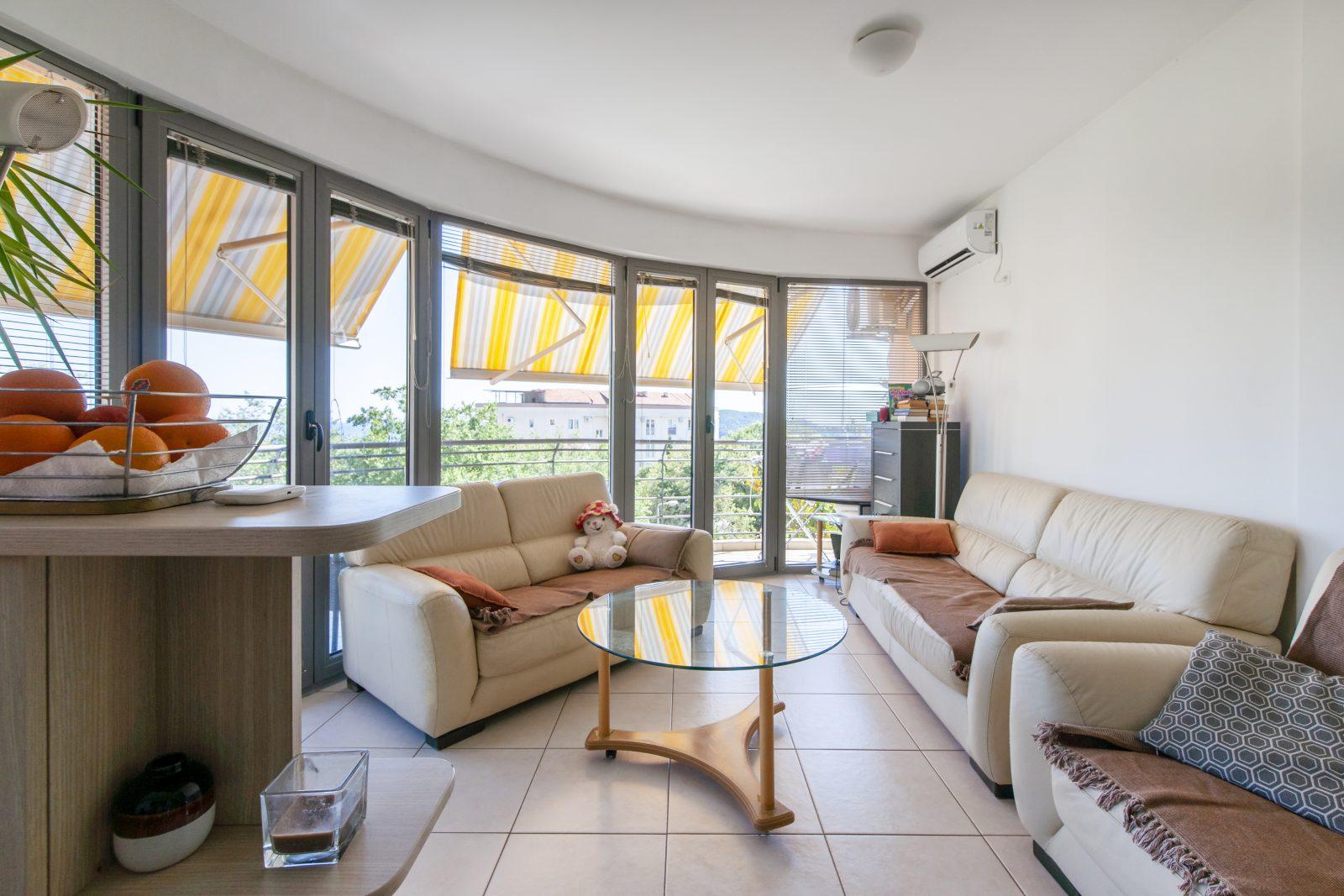Квартира отличается просторной гостиной, объединенной с кухней, площадью 30,5 м², где огромные панорамные окна от пола до потолка открывают завораживающий вид на море – от Рафаиловичей до комплекса Дукле.