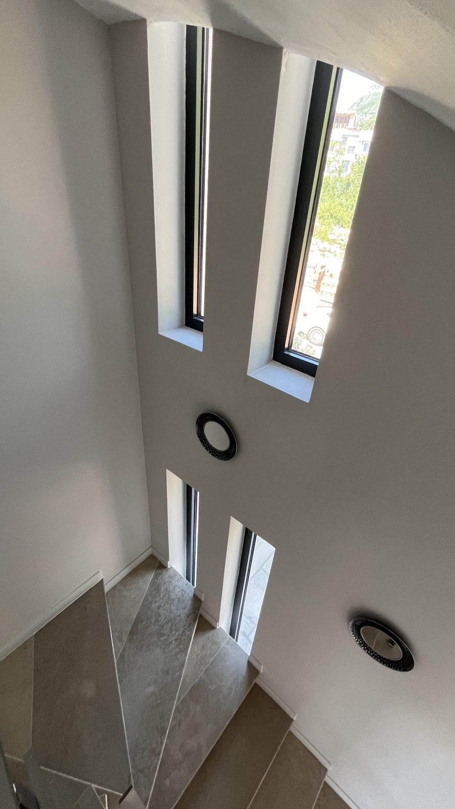 - Панорамные энергосберегающие окна с алюминиевыми блоками, высотой 2.5 м.