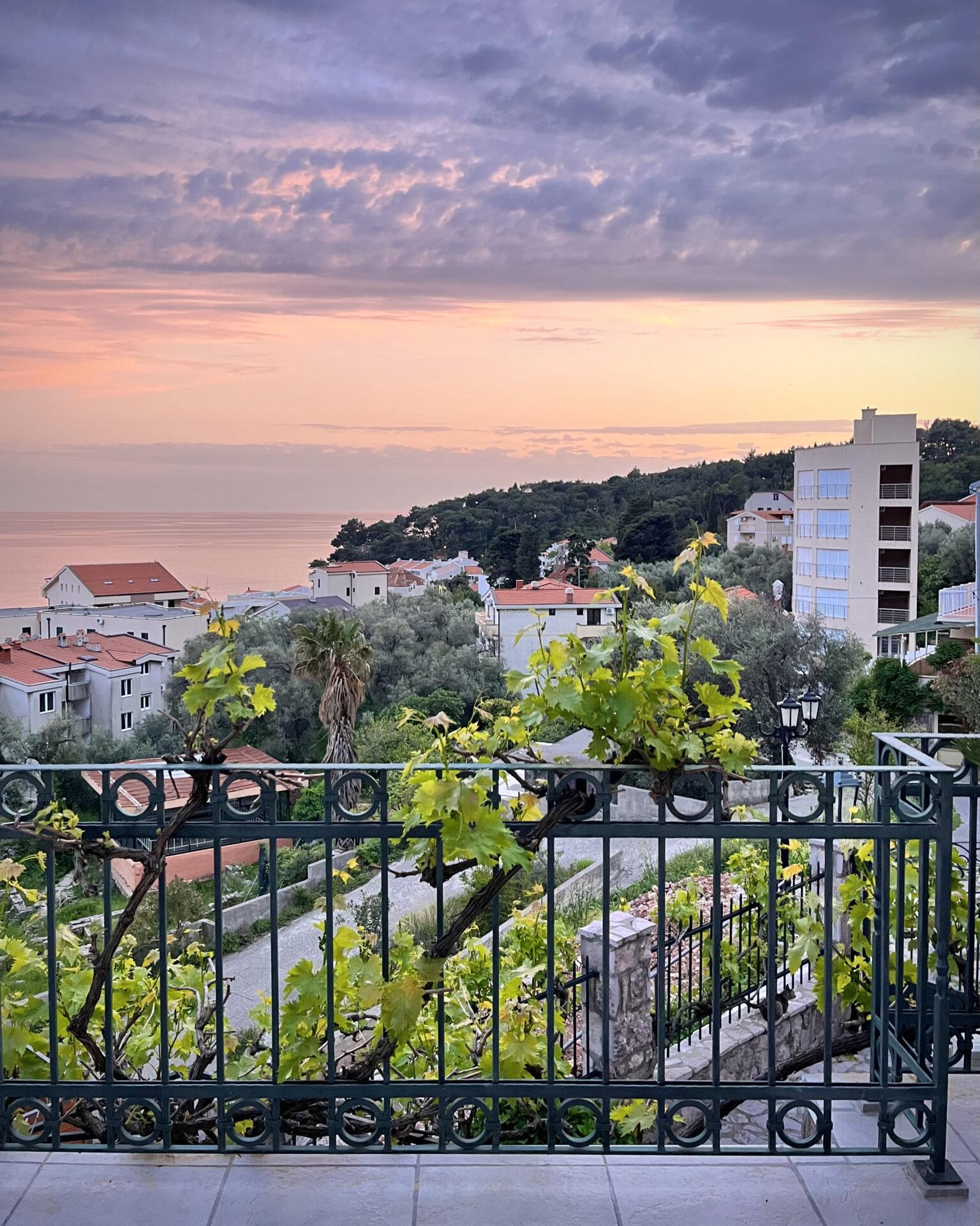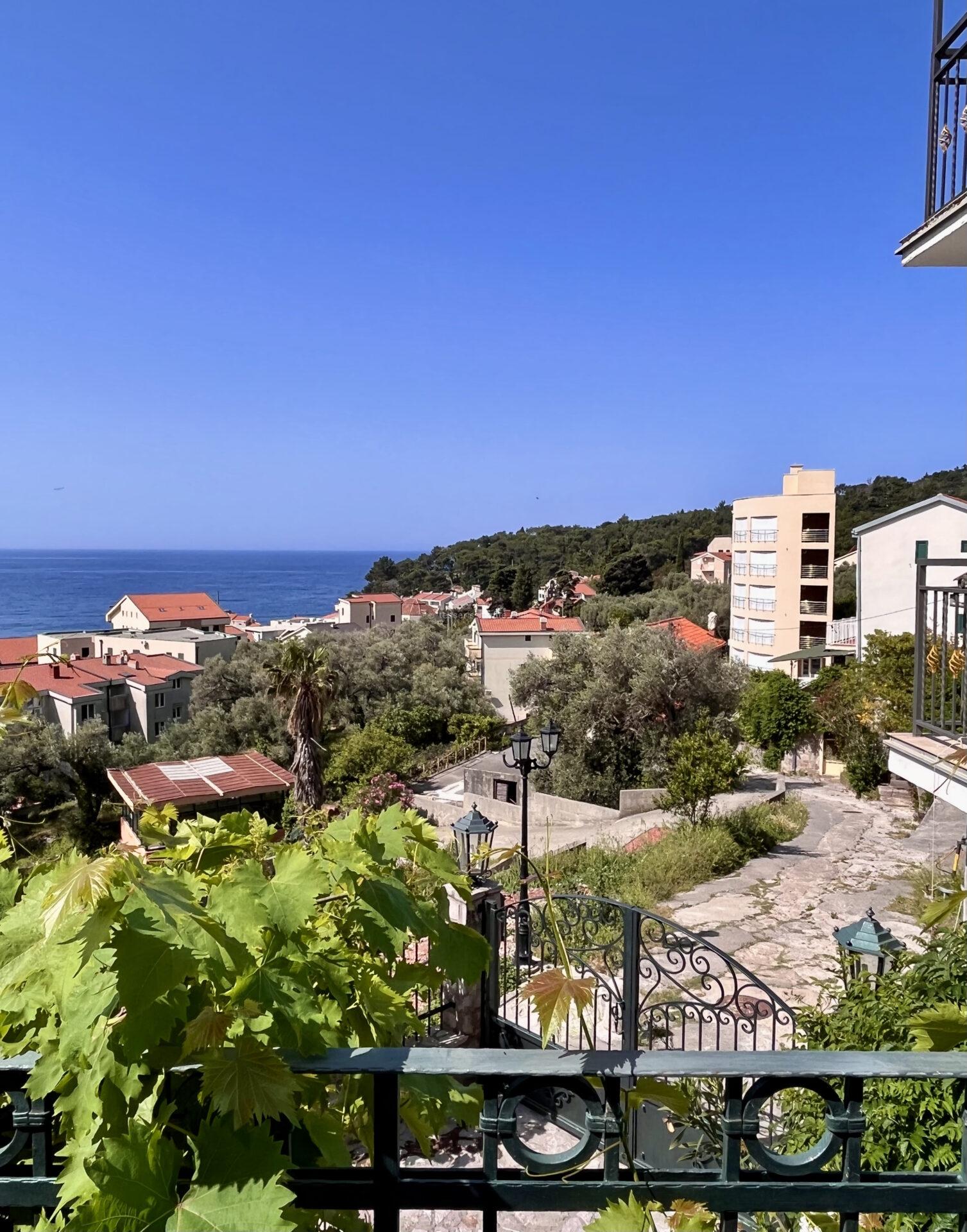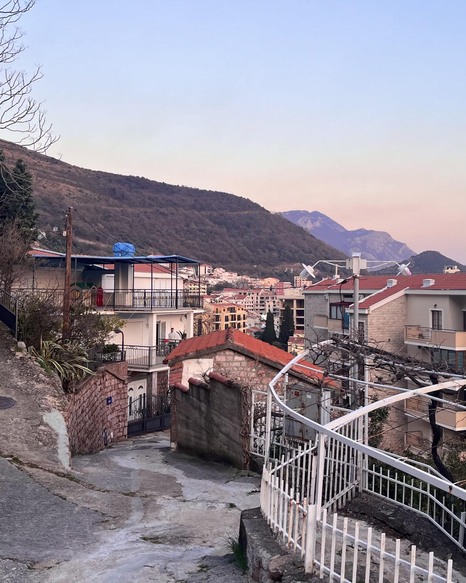 Придомовая территория, вымощенная натуральным камнем, с видом на море и горы