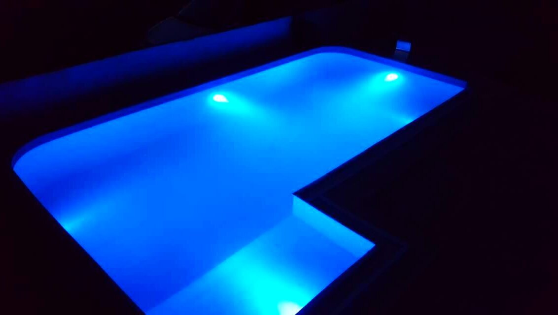 На участке расположен бассейн 4м*8м с диодной подсветкой в разной цветовой гамме и с различными световыми спецэффектами.