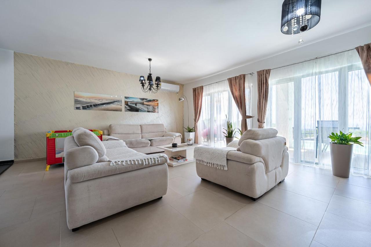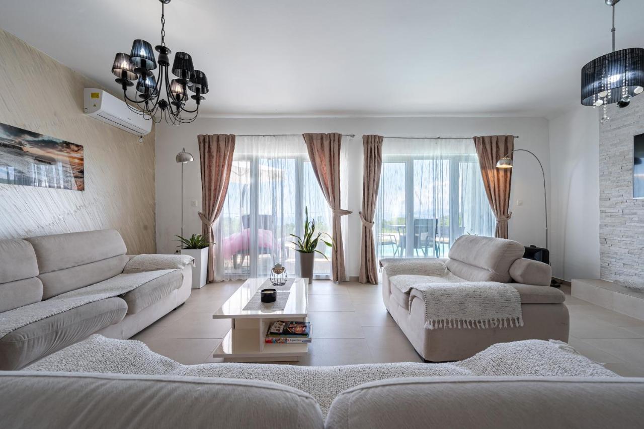 Вилла находится в тихом, уютном и живописном месте, окружена маслинами и пальмами, имеет собственный парк , с прекрасным панорамным видом на море. Вилла состоит из пяти спален, четырех ванных комнат, небольшим тренажерным залом, с террас открывается прекрасный вид на море. Полностью оборудованная новой мебелью и техникой. Имеются два бассейна, около бассейна террасы 120м2, на территории имеется крытая терраса,с летней кухней и зоной для барбекю.