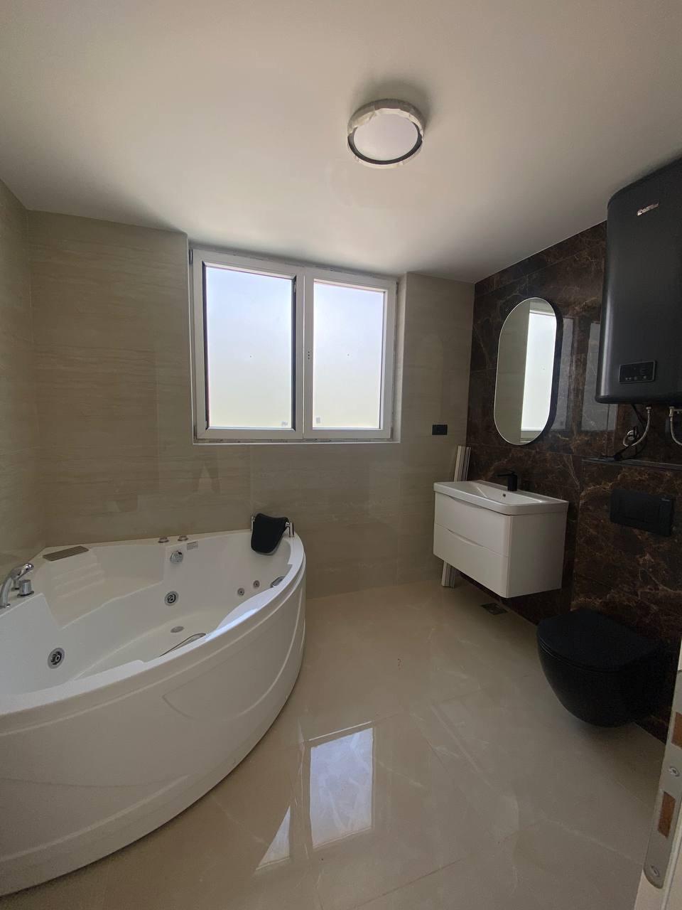 Выполнена в стиле high-tech: много света, стекла, декор и сантехника черного цвета. Для истинных ценителей эстетики минимализма и изысканного дизайна пространства.