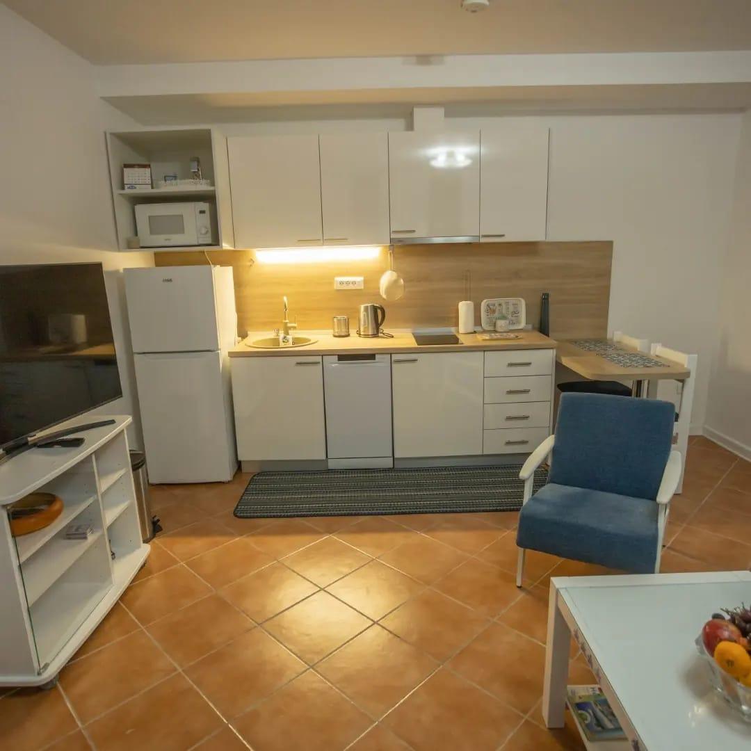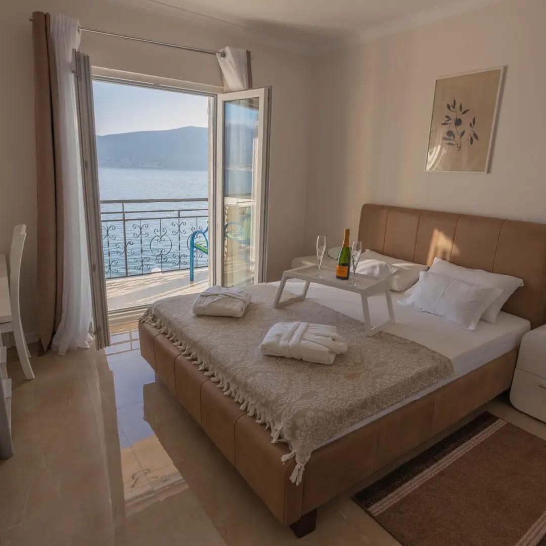 Расположение виллы на самом берегу моря позволяет наслаждаться прекрасными видами и звуками природы, а также обеспечивает возможность причала для лодки или катера прямо перед домом. Расстояние до Херцег-Нови составляет всего 15 км, до аэропорта Тиват — 20 км, что делает этот объект еще более привлекательным.