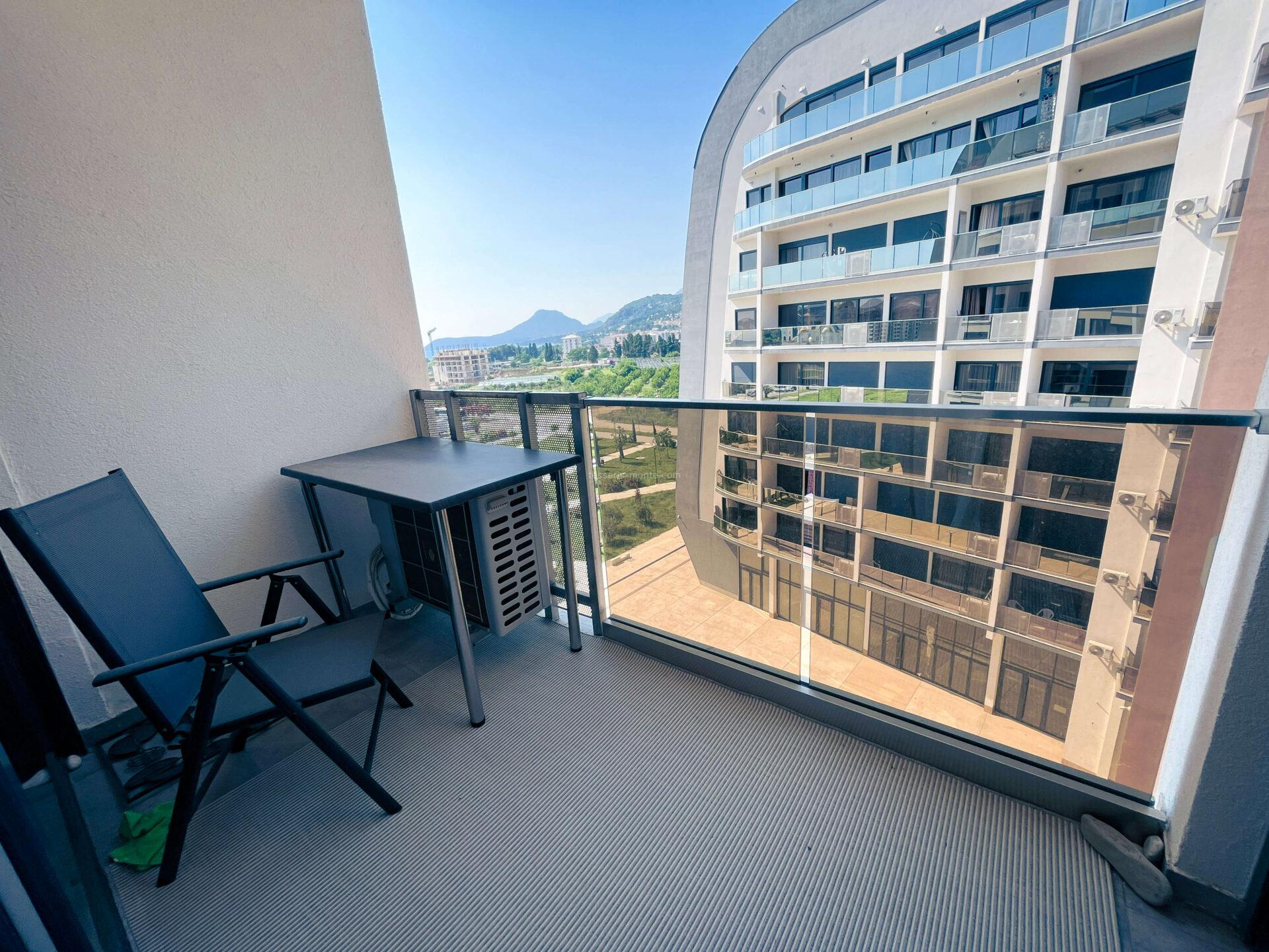Јединствена прилика! Продаје се стан у луксузном новом комплексу - Сохо Цити, који се налази у Бару. Овај модеран стамбени комплекс нуди удобност и елеганцију. Простран једнособан стан је комплетно намештен и опремљен белом техником. Уживаћете у задивљујућем панорамском погледу на море са петог спрата, директно са вашег балкона. Површина стана је 65 квадратних метара. Моћи ћете да уживате у погледу на море са балкона на који се излази из спаваће собе и дневног боравка. Комплекс такође нуди подземне гараже, велики паркинг и оставе. Комплекс има дечје игралиште, банку и ресторан. Систем паметне куће је присутан у целом комплексу, а рецепција која ради 24 сата је увек спремна да помогне станарима.