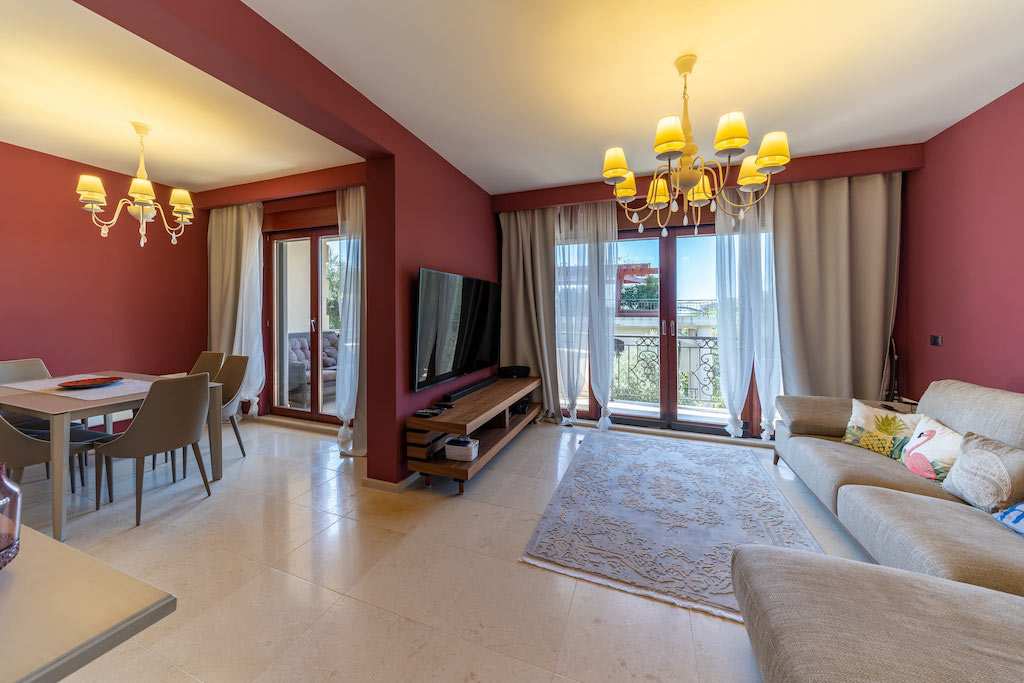 Стан има велику стамбену површину од 86 м2 са добро осмишљеним распоредом који се састоји од дневног боравка са кухињом, две спаваће собе, два купатила и терасе. Дизајн ентеријера је највишег стандарда, нуди удобност и стил. Стан је комплетно намјештен и опремљен, спреман за Ваш угодан боравак.