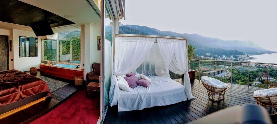 Теуцо Јацуззи у спаваћој соби са погледом на море - луксуз и опуштање на једном месту.