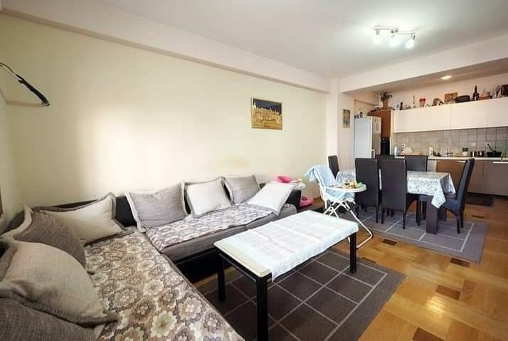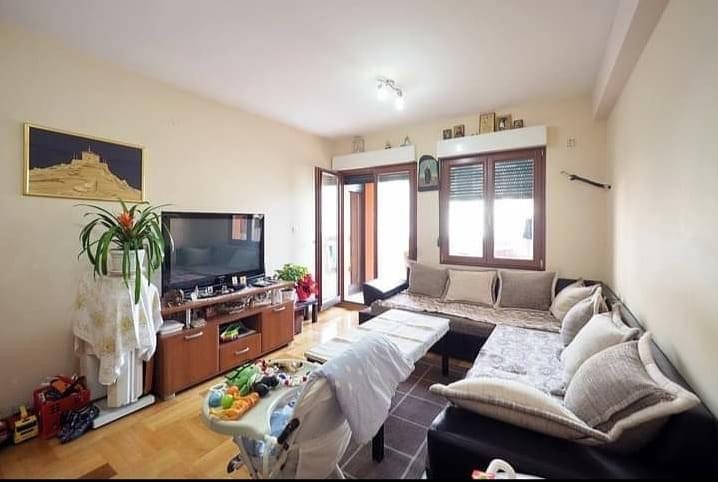 - Стан је опремљен намештајем и техником (фрижидер, веш машина, ТВ).