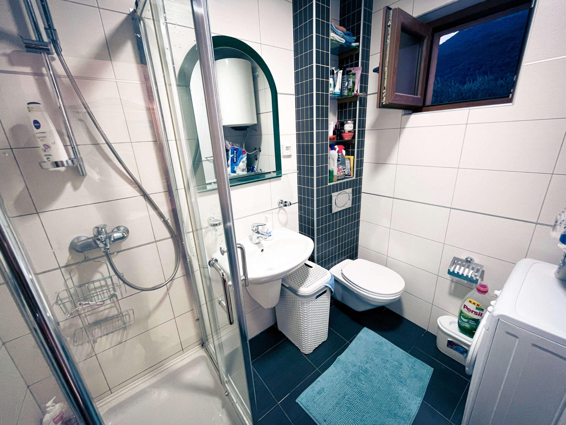 Површина стана 57м2, налази се у високом приземљу. Има диван поглед на море и на планине.