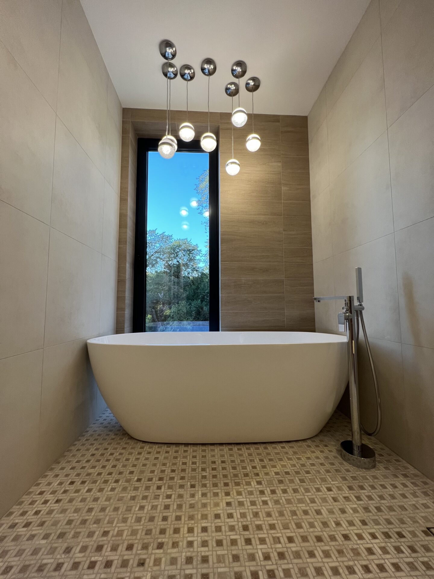 Модеран распоред са отвореним просторима, панорамским прозорима и високим плафонима ствара осећај пространости.
