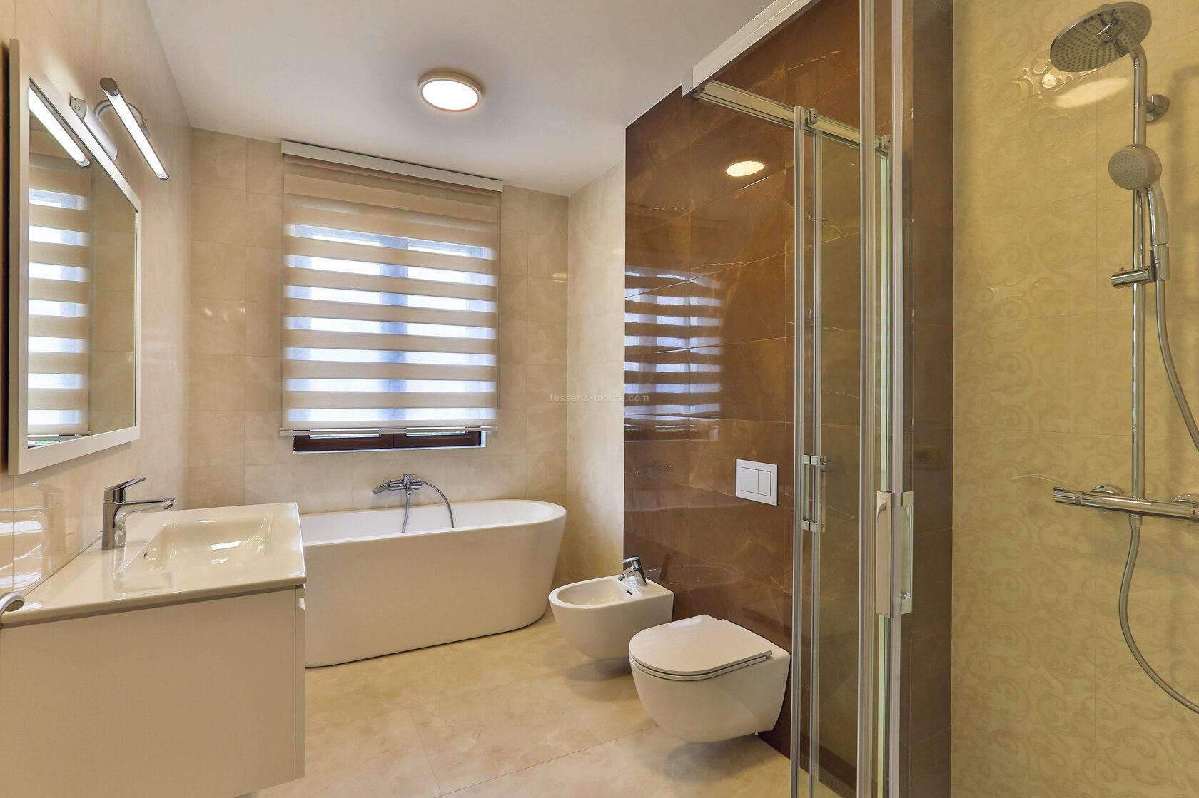 Вілла опалюється системою «тепла підлога», кондиціонери Mitsubishi, встановленою кухнею італійського виробництва з технікою Bosch, обладнаними гардеробами.