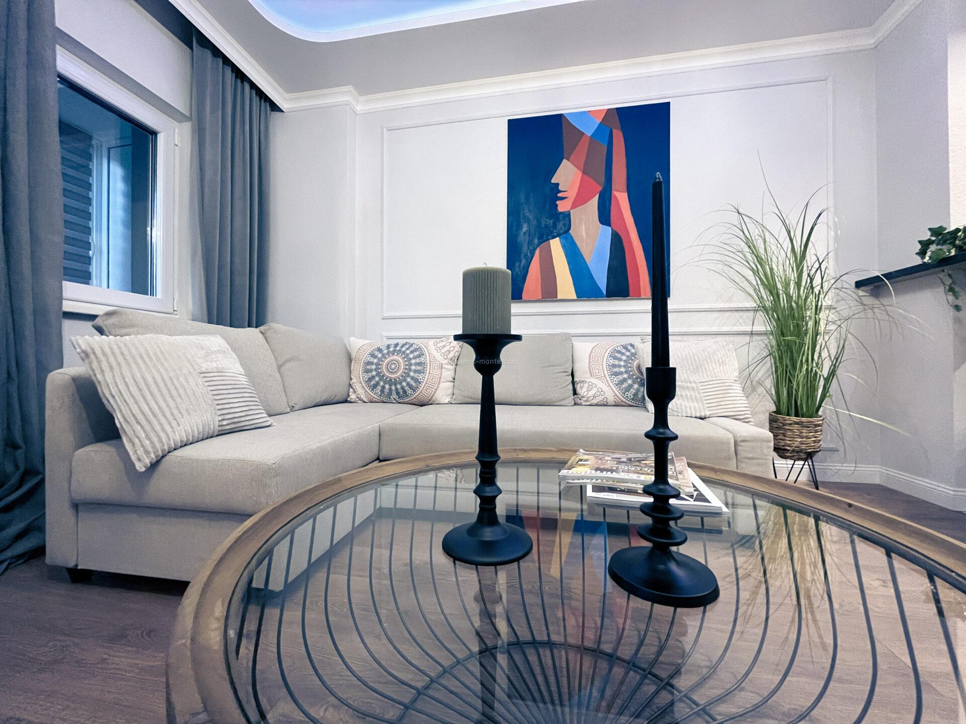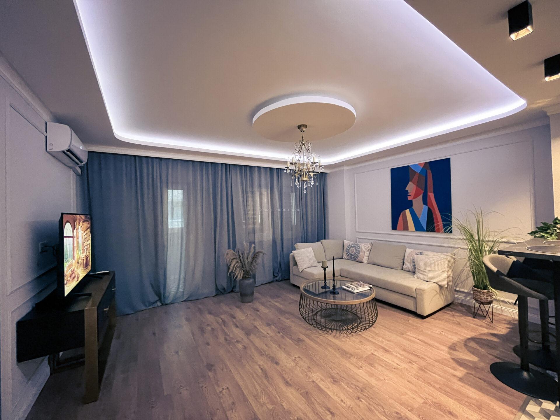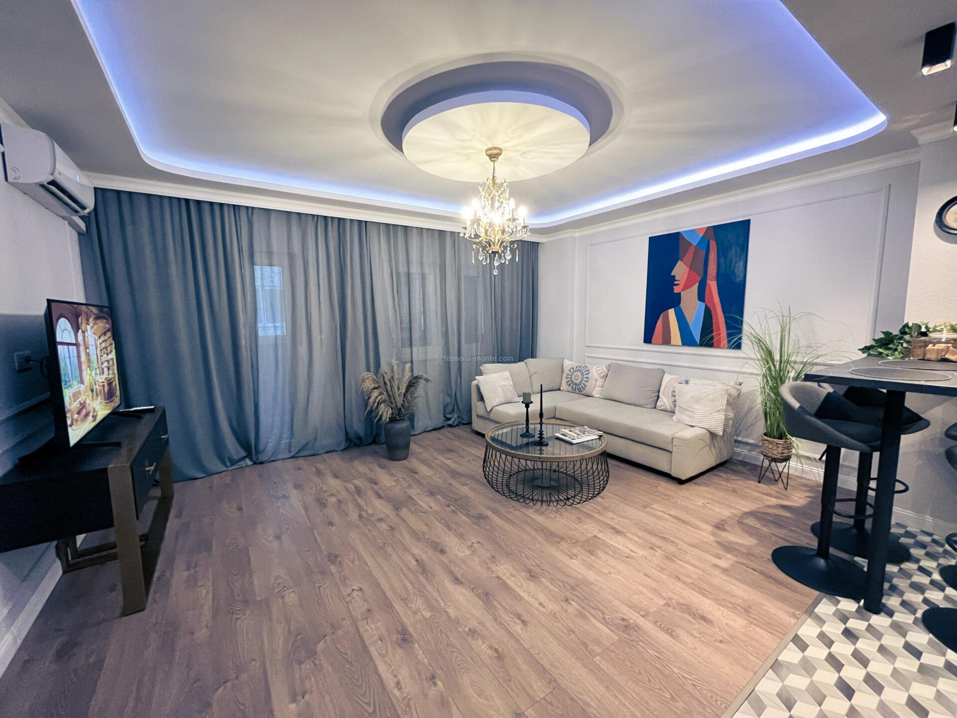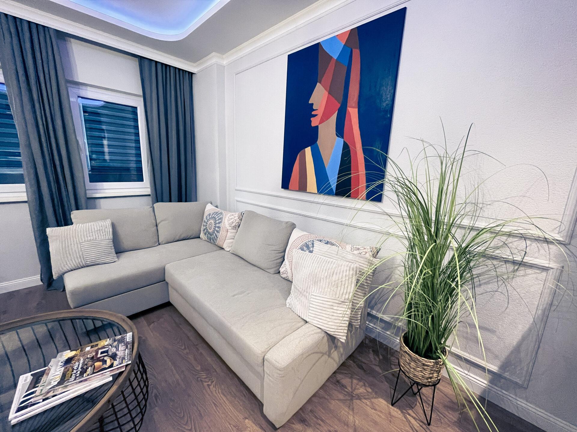 Площею 58 кв. метрів з видом на гори та трохи на море з 6-го поверху (останній поверх). Сучасний якісний будинок з ліфтом, закритим під'їздом, облагородженою територією з внутрішнім двориком з тінечкою, лавочками та невеликими зеленими оазами та величезним паркуванням перед будинком.